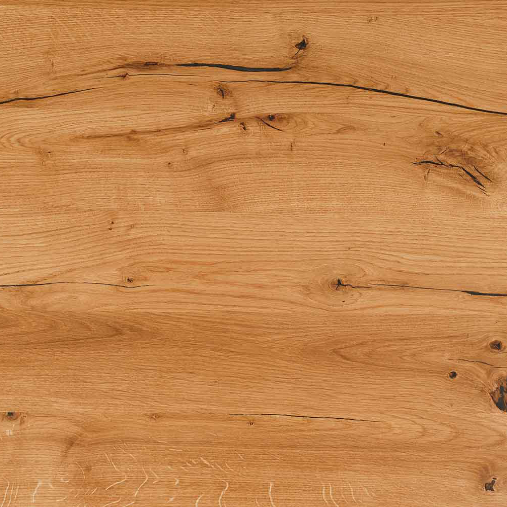 Rustikale Tischplatte aus Eiche massiv (LV) – mit gefüllten Ästen, Rissen und natürlichen Merkmalen