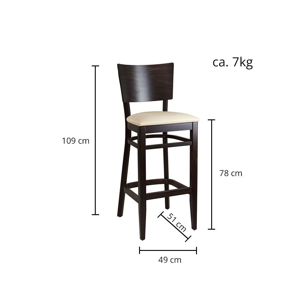 Der Guno-Bar-P ist ein klassischer Gastronomiebarstuhl mit gepolsterter Sitz. Durch die zusätzlichen Verstrebungen unter dem Sitz gewinnt der Stuhl an Stabilität.