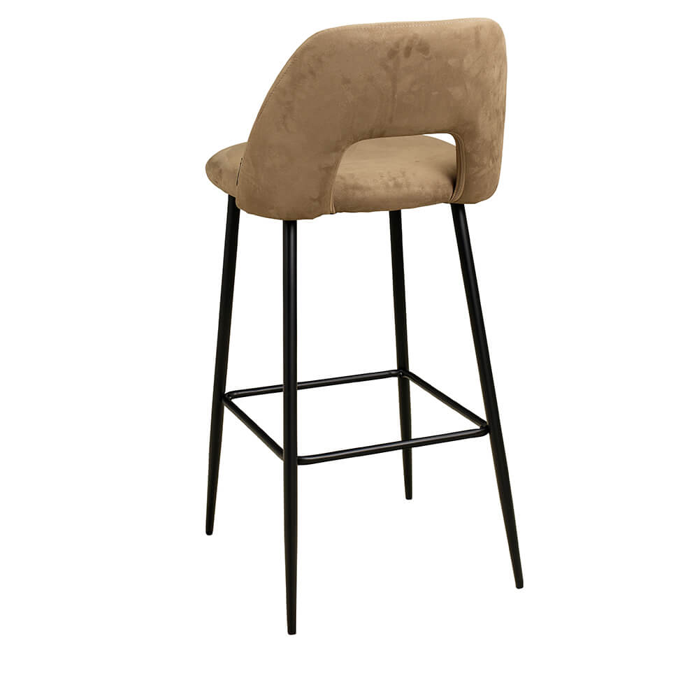 Der Uson-Bar-Hogan verbindet eine elegante Form mit verlässlichem Sitzkomfort und einer praktischen Öffnung im Rücken. Die Vollpolster-Sitzfläche, das Metallgestell und die integrierte Fußstütze sind auf den täglichen Ablauf in der Gastronomie ausgelegt.
