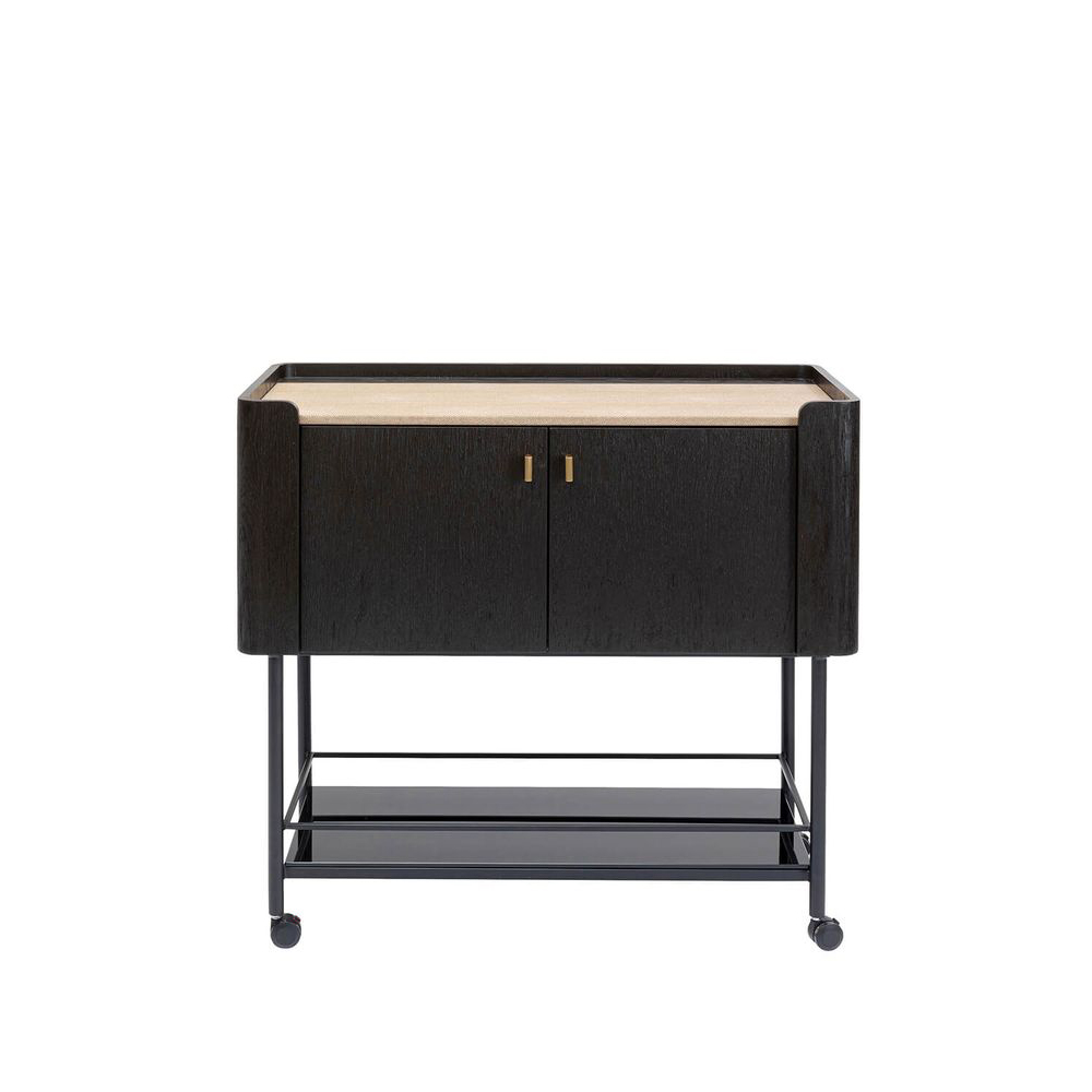 - Ein äußerst eleganter Servierwagen, der in der feinen Tradition des italienischen Möbeldesigns gefertigt wurde, präsentiert sich mit ausgewählten Materialien und intelligenten Funktionen.