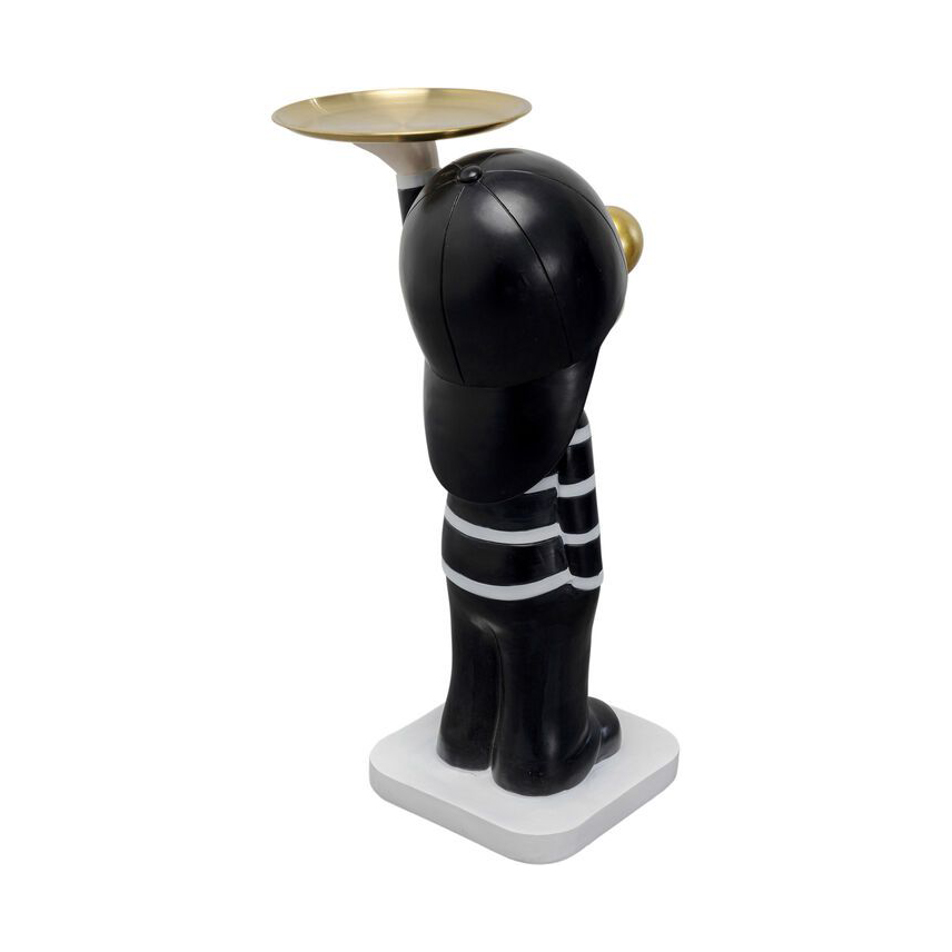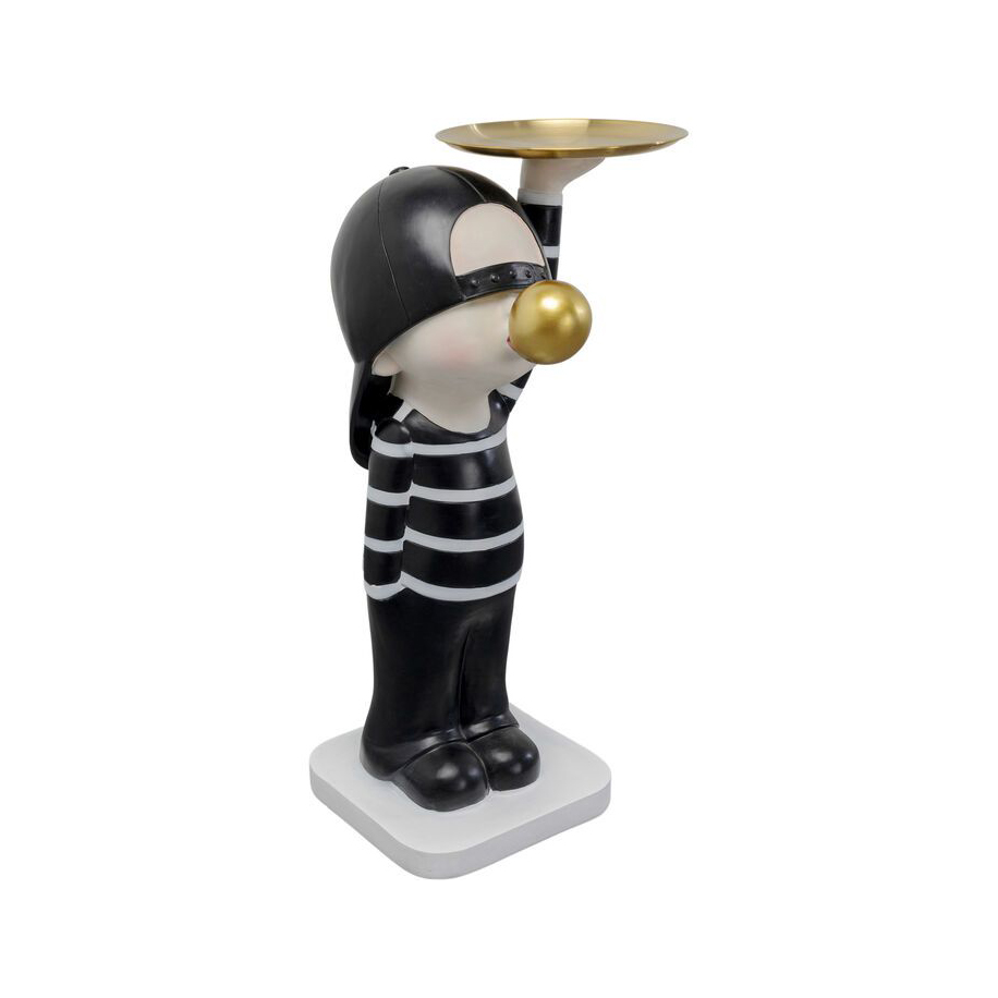 Dieser Tisch verfügt über einen Korpus aus Polyresin und ein vermessingtes Edelstahltablett. Er hat eine maximale Belastbarkeit von 3 kg und wird teilzerlegt geliefert, wobei jedes Stück handbemalt und ein Unikat ist.