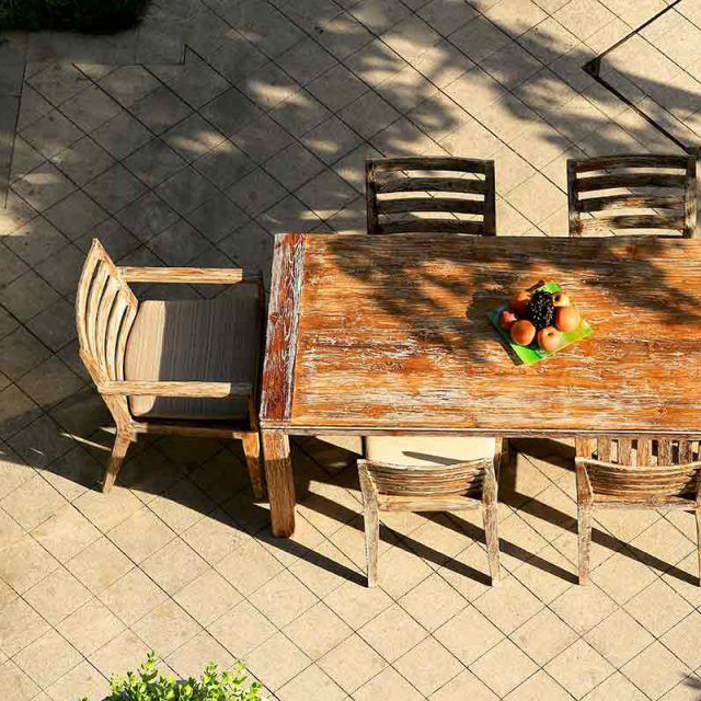 Erhältlich in den Farben Teak-Wash, verwittertes Grau und verwittertes Café-Braun