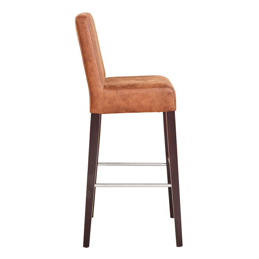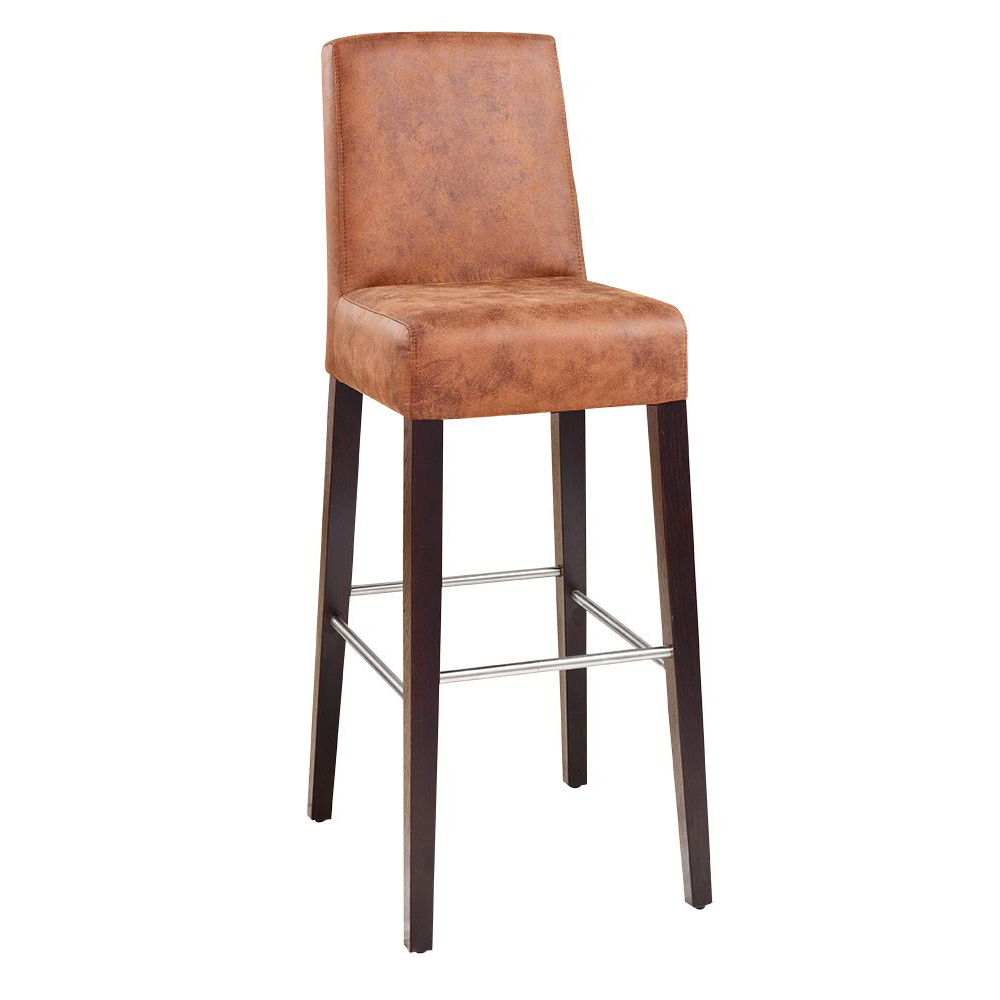 Der Bimo-Bar ist ein schlichter Barhocker mit einer gepolsterten Sitz- und Rückenfläche. Die Aluminium-Verstrebungen am Vollpolsterbarhocker sorgen für mehr Stabilität.