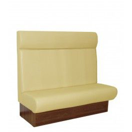 Eine Polsterbank mit flachen Rücken und Sockel, diese Loungebank ist für die Gastronomie geeignet.