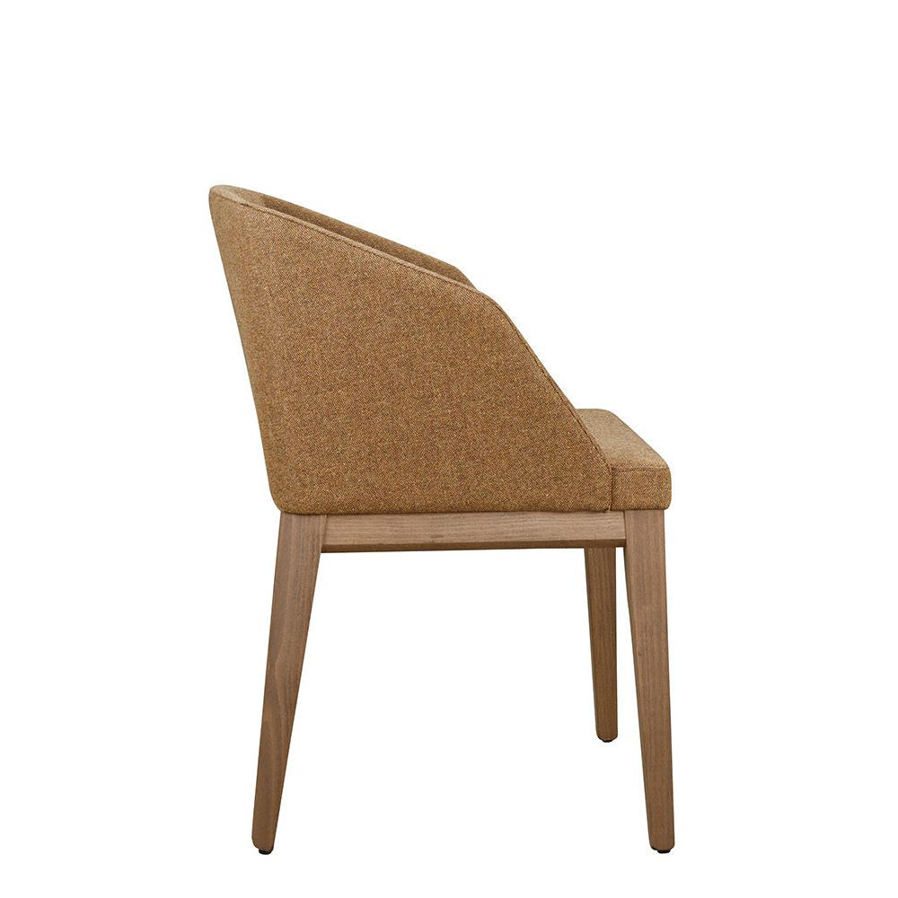 Der Cantura-Arm ist ein moderner Gastronomiestuhl. Bezugsstoff und Beizton sind bei diesem Modell frei wählbar. Zu diesem Stuhl gibt es einen passenden Barhocker.