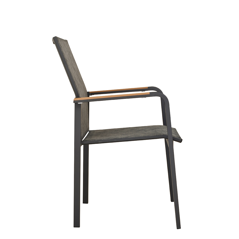 Der Cinara Anthrazit 24 ist eine gute Lösung für Ihre Außenbestuhlung. Mit einem leichten Aluminiumgestell kombiniert er Robustheit und zeitloses Design. Die wetterfesten Polywood-Armlehnen sowie der atmungsaktive Textylen-Sitz garantieren hohen Sitzkomfort und Langlebigkeit. Der Stuhl ist stapelbar und somit gut geeignet für eine platzsparende Lagerung – eine gute Wahl für Restaurants, Cafés, Hotels und öffentliche Einrichtungen. Ob in Ihrem Gastgarten oder auf der Terrasse – der Cinara Anthrazit 24 ist Ihre zuverlässige Wahl für flexible und hochwertige Außenmöbel.