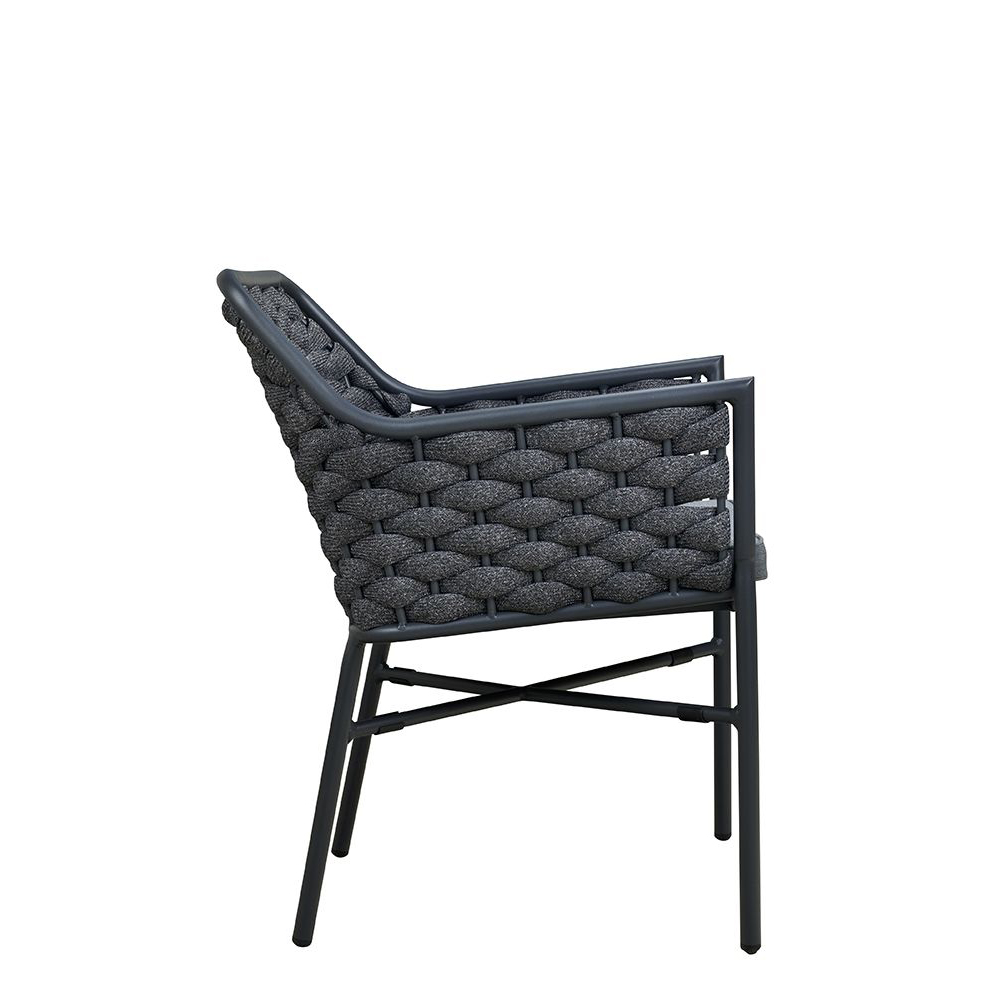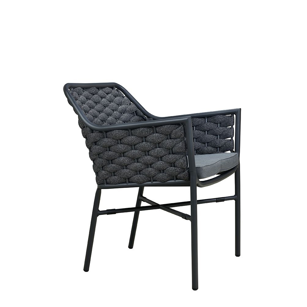 Der Ciraco black ist ein beliebter Stuhl für den Außenbereich. Rücken und Armlehnen sind mit strapazierfähigem, witterungsbeständigem und pflegeleichten Textylen-Geflecht bespannt. Das Geflecht ist schnell trocknend. Das Modell ist stapelbar.