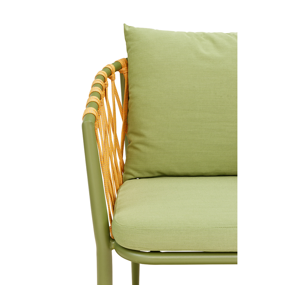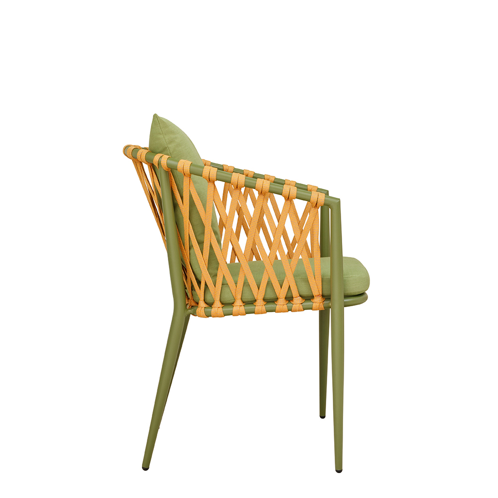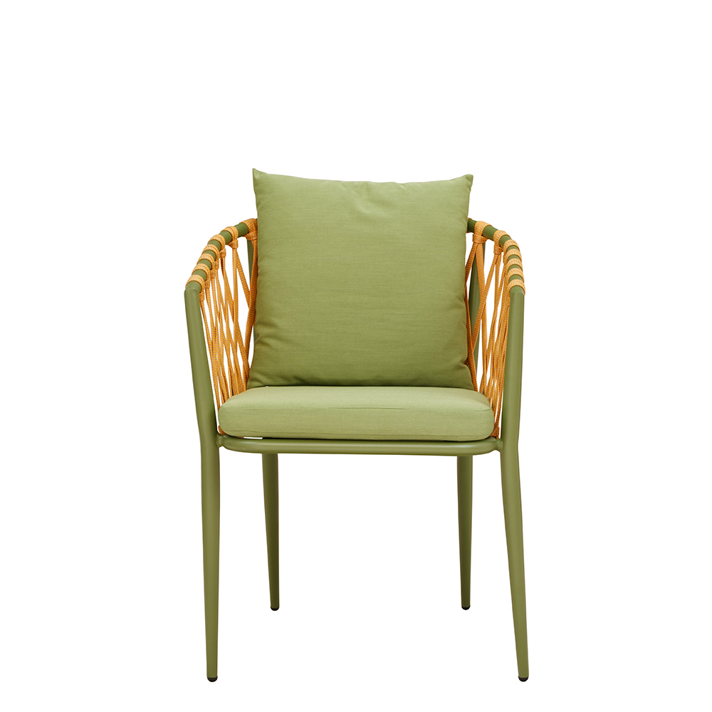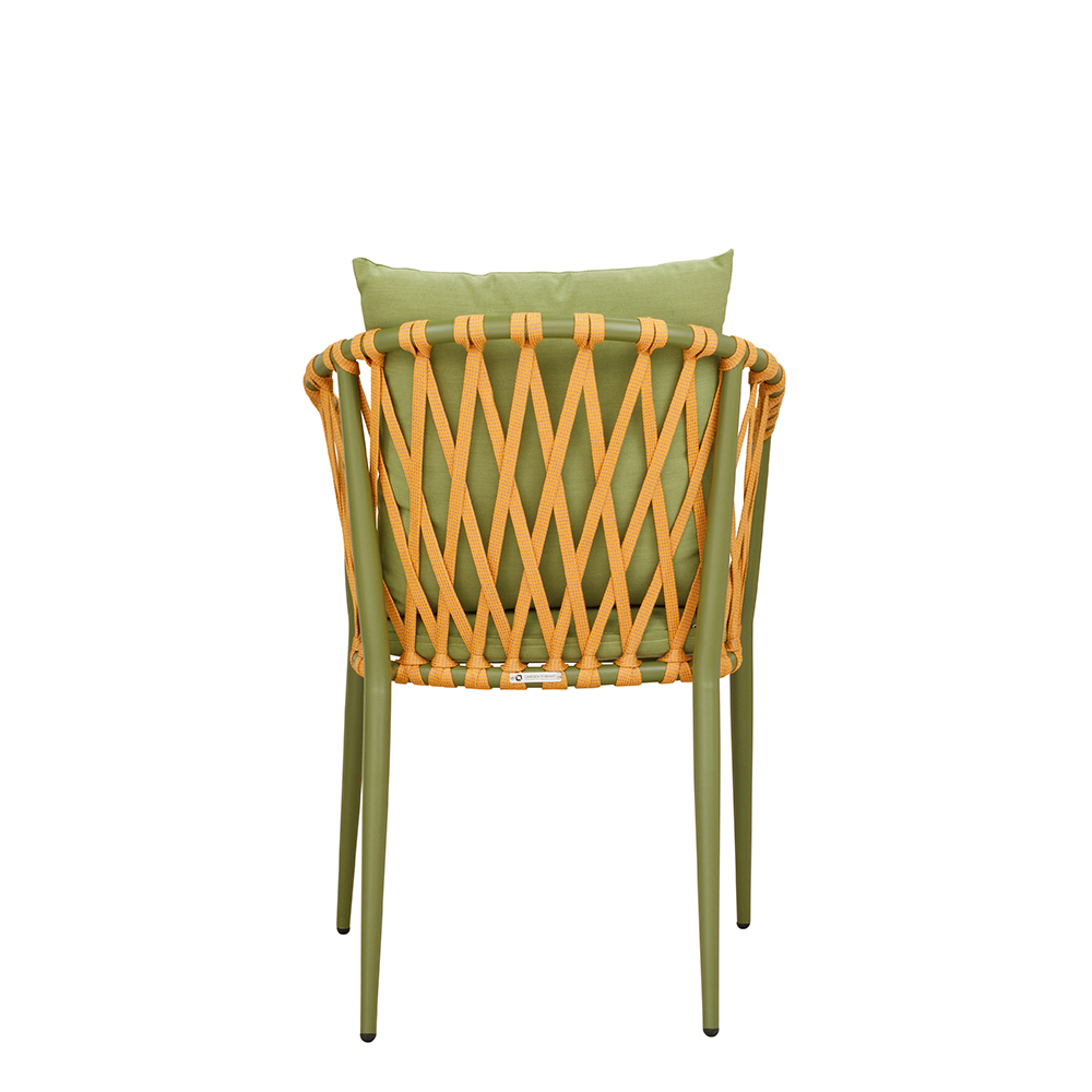 Der Crosima Green Orange vereint modernes Design mit hoher Funktionalität. Das langlebige Aluminiumgestell und das wetterfeste Textylen-Geflecht sorgen für eine exzellente Beständigkeit, selbst bei intensivem Gebrauch im Außenbereich. Mit integriertem Sitz- und Rückenkissen bietet er einen guten Sitzkomfort für Ihre Gäste. Dank der Stapelbarkeit lässt sich der Stuhl platzsparend verstauen – gut für den flexiblen Einsatz in Restaurants, Lounges und Cafés.