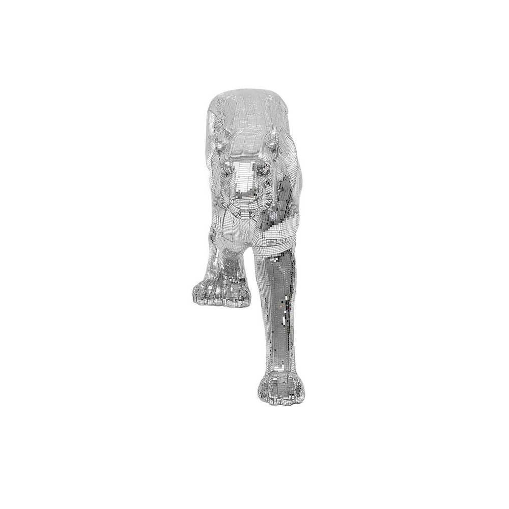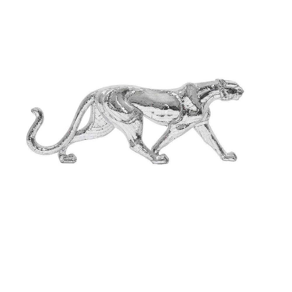 Eine wahre Hommage an Glamour, so majestätisch wie das Tier selbst. Diese glänzende Skulptur ist mit schillernden Spiegelmosaiken verziert und strahlt geheimnisvoll. Dank ihrer dynamischen Form und Größe wirkt sie von jeder Seite aus wirklich eindrucksvoll.