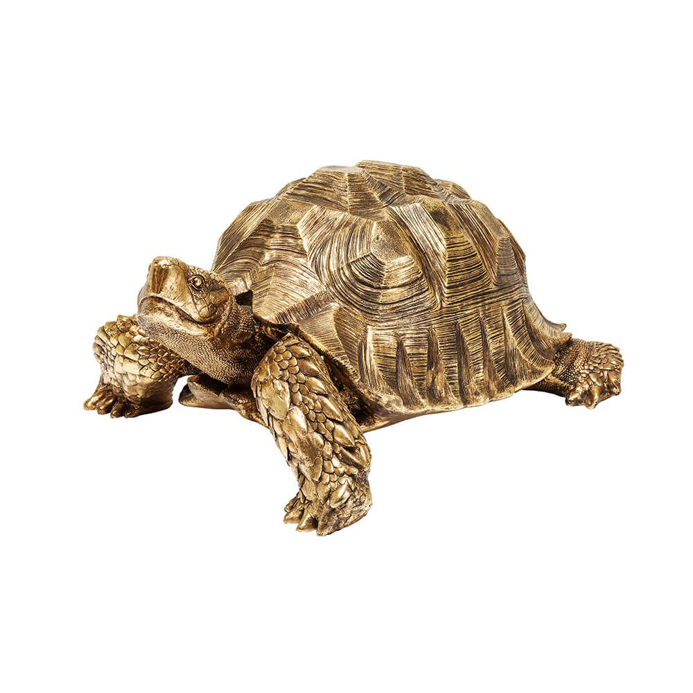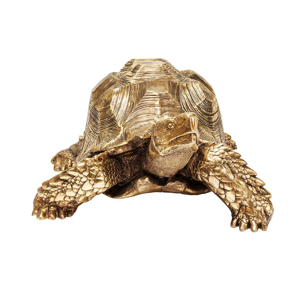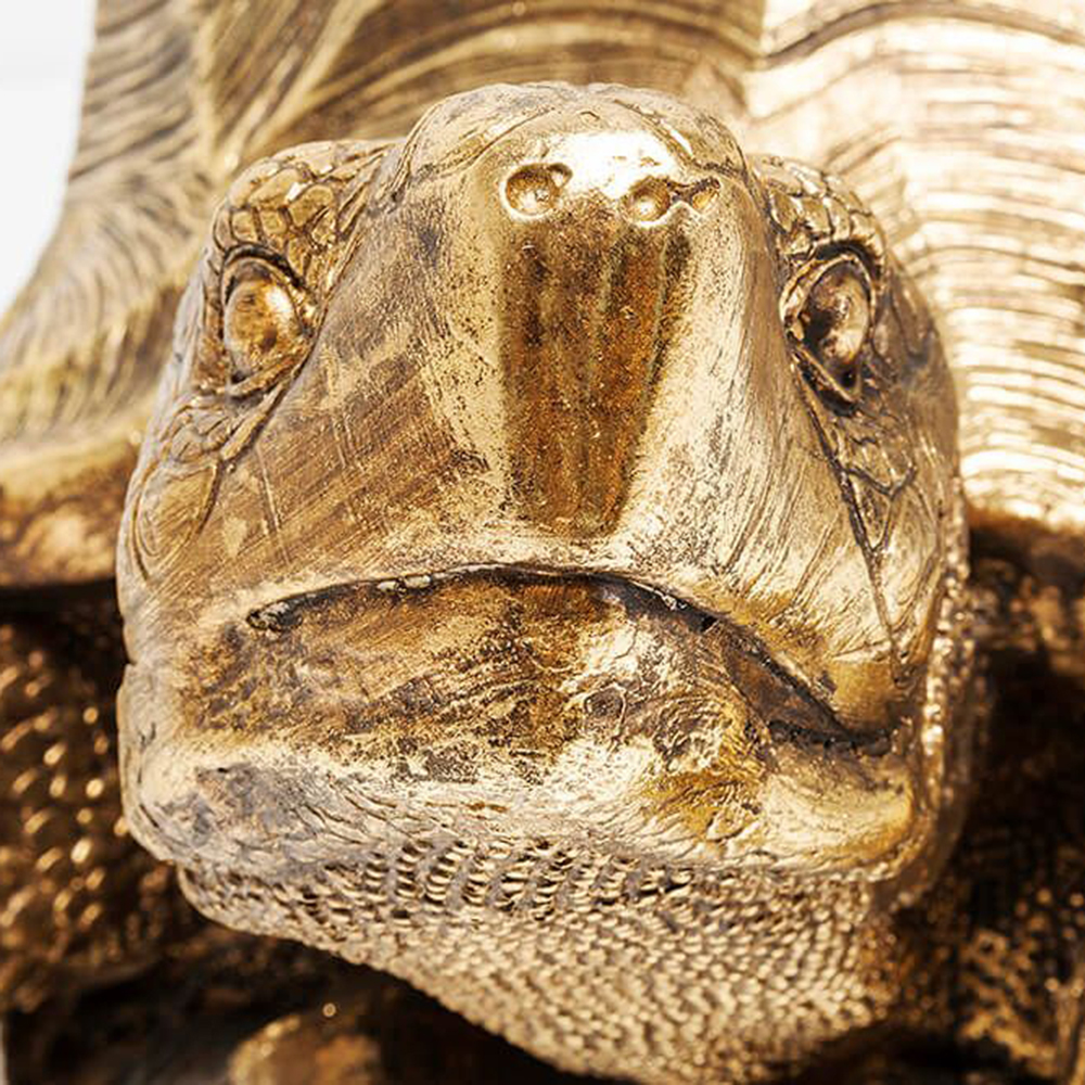 Dekorative Skulptur: Eine faszinierende Idee zur Dekoration. Dieses beeindruckende Objekt gleicht seinem Vorbild in jedem Detail. Die Figur ist detailgetreu einer Riesenschildkröte nachgebildet. Doch beachten Sie: Das Reptil beansprucht seinen eigenen Raum. Das dekorative Accessoire ist in Gold gehalten und wird die Bewunderung aller Besucher wecken.