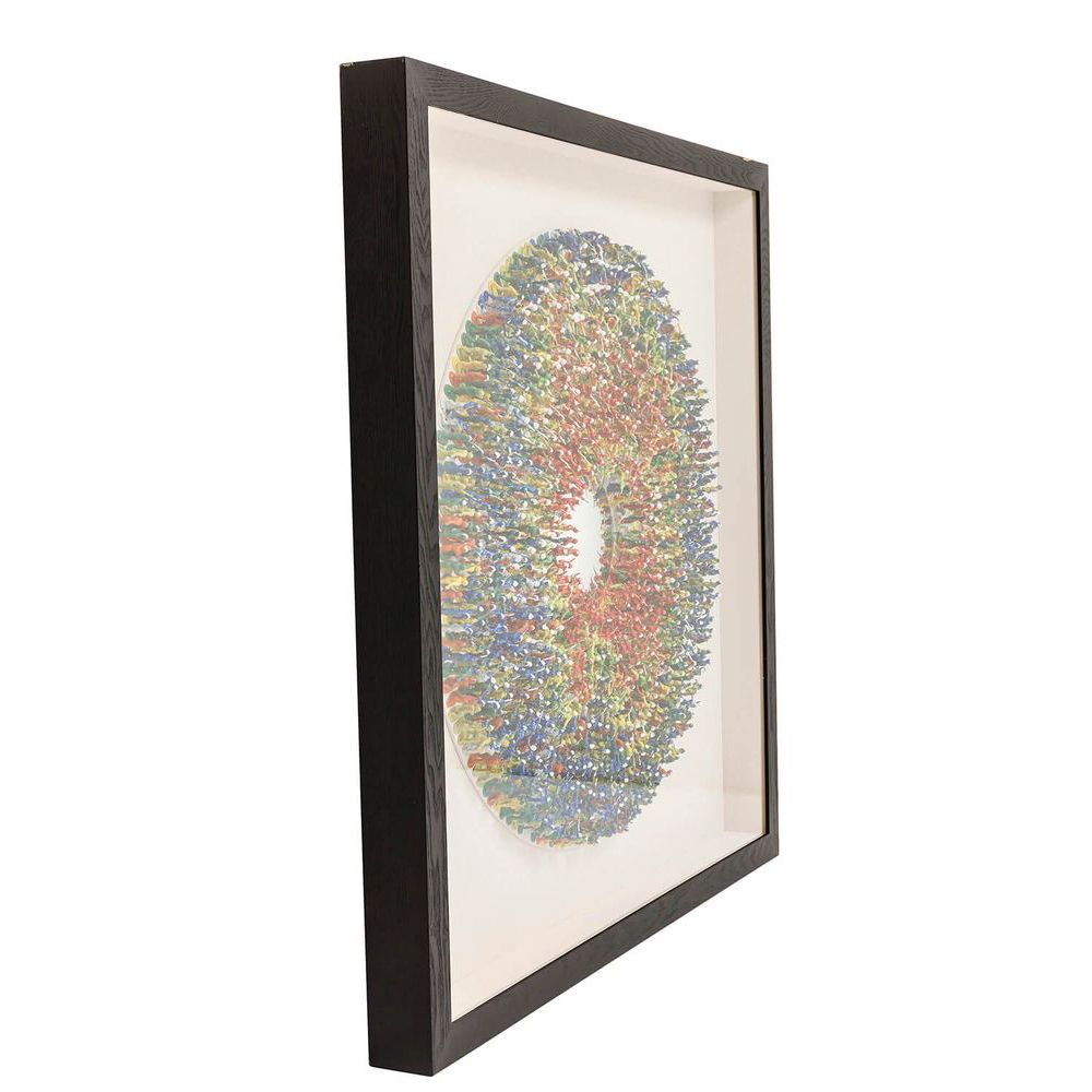 Ein faszinierender Dekorahmen mit einem kunstvoll abstrakten Motiv, das den Betrachter in seinen Bann zieht. Diese beeindruckende Wandskulptur könnte ebenso gut in einer Galerie präsentiert werden. Sie verleiht dem Interieur einen kreativen und avantgardistischen Charme.