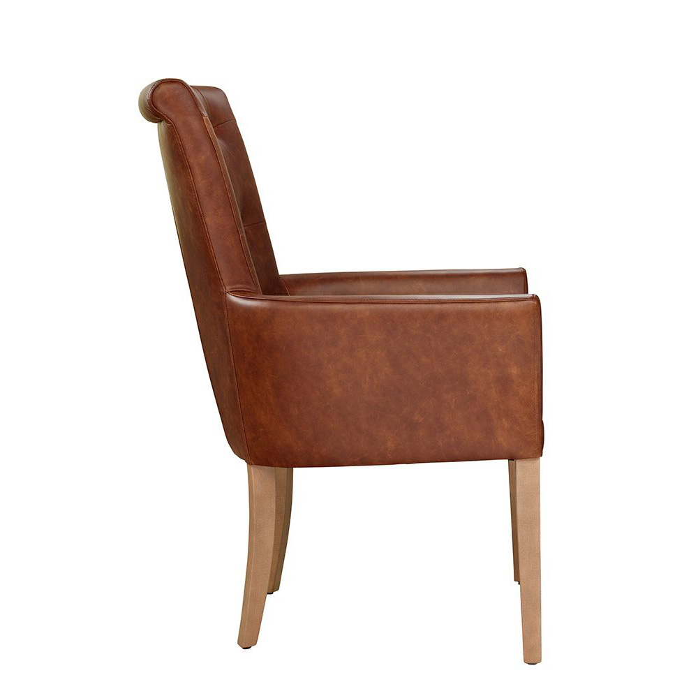 Der Gary-Arm ist ein klassischer Vollpolsterstuhl, der durch seine gepolsterten Armlehnen gemütlich wie ein Sessel wird. Der Stuhl hat am Rücken eine Knopfsteppung. Besonders gut macht sich das Modell im Restaurant- und Hotelbereich.