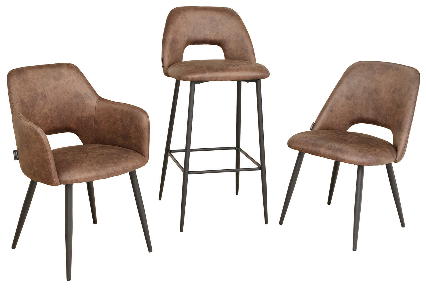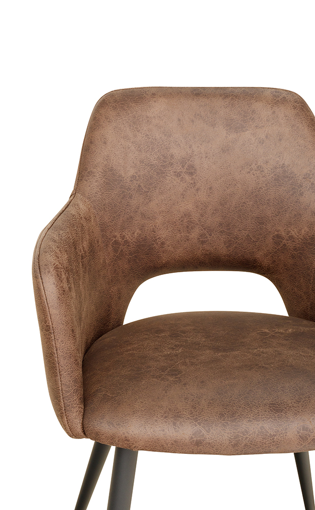 Der gepolsterte Stuhl eignet sich für Restaurants, Hotelgastronomie, Bankett- und Lounge-Szenarien sowie für Café-Bereiche. Die Rückenöffnung erleichtert das Verrücken und unterstützt die zügige Reinigung zwischen den Servicezeiten. Der Stoff imitiert die Optik von Leder und schafft extra Gemütlichkeit mit natürlichen Farben.