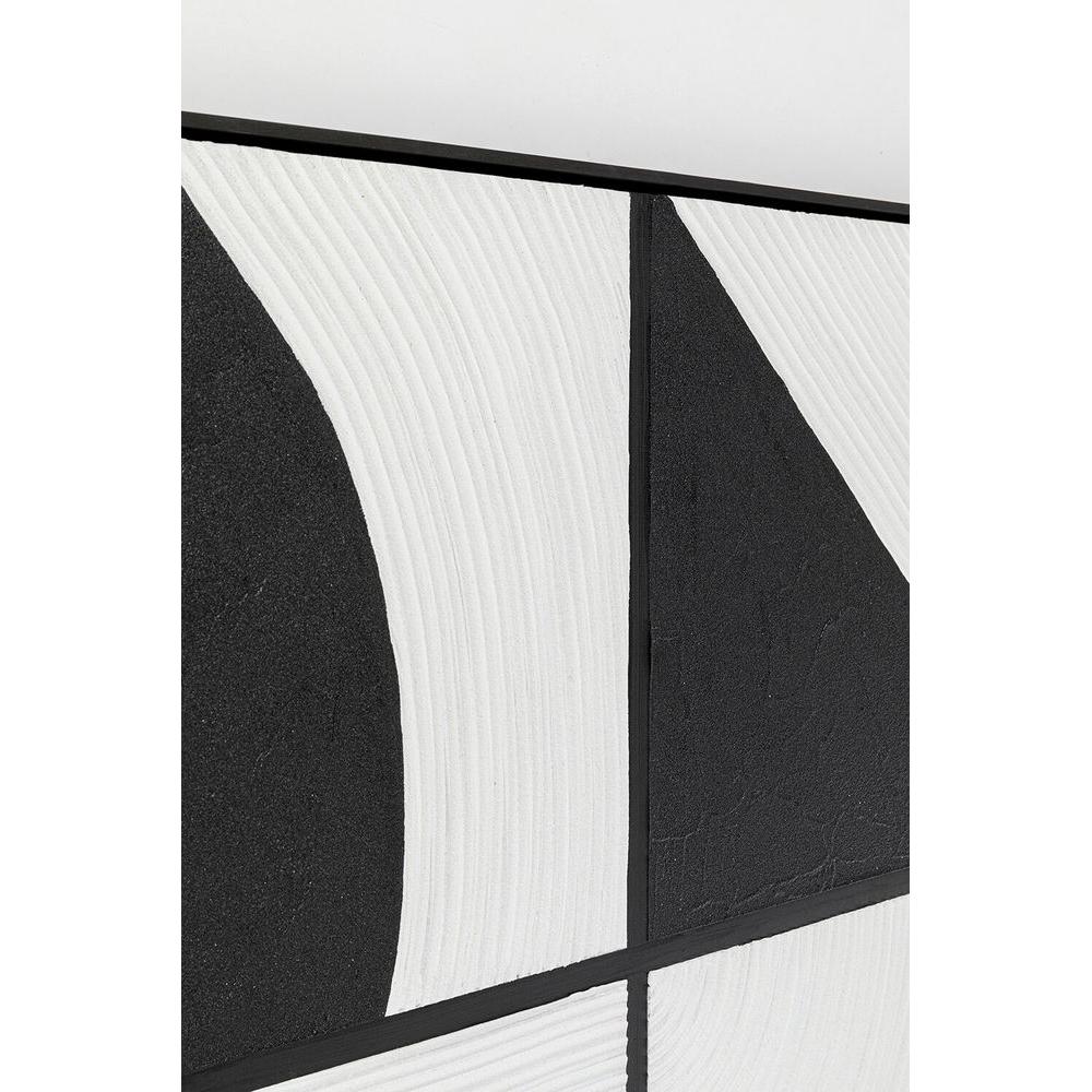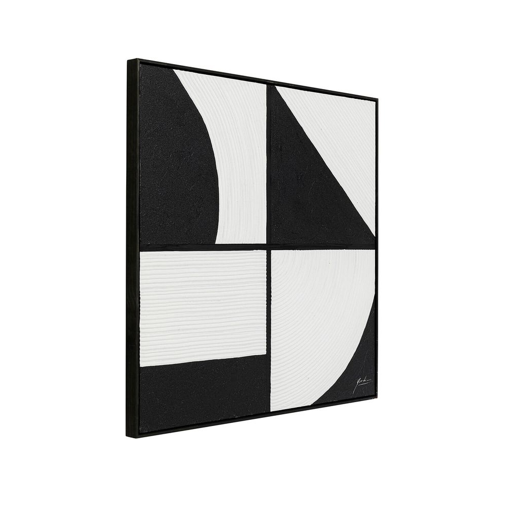 Dieses quadratische Leinwandbild in Schwarz-Weiß ist ein wahres Kunstwerk. Jedes Stück wird einzeln von Hand gemalt und ist somit ein einzigartiges Unikat. Die Handwerkskunst ist an den feinen Strukturen im Farbauftrag deutlich erkennbar. Die grafischen Muster verleihen dem abstrakten Wandbild einen modernen Touch, der sowohl im Wohnzimmer als auch im Schlafzimmer beeindruckt. Hergestellt mit höchsten Qualitätsstandards, besteht die Leinwand aus Baumwolle und wird von einem massiven Pinienholzrahmen umrandet.