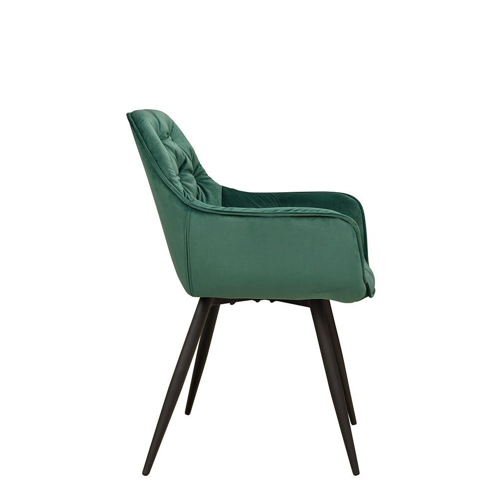 Der Ginger Dark Green ist ein vielseitiger Vollpolsterstuhl mit edler Knopfsteppung und einem robusten Metallgestell – gut geeignet für professionelle Gastronomie wie Restaurants, Hotels oder Cafés. Die komfortable gepolsterte Sitzschale sorgt für ein ansprechendes Ambiente und ermöglicht langes, entspanntes Sitzen. Das Design ist sowohl elegant als auch funktional und passt sehr gut in moderne und klassische Raumkonzepte.