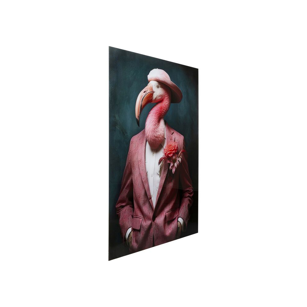Dieses Glasbild mit einem Flamingo im Anzug ist ein charmanter Mix aus Eleganz und Humor. Der Hingucker für Ihr Zuhause.