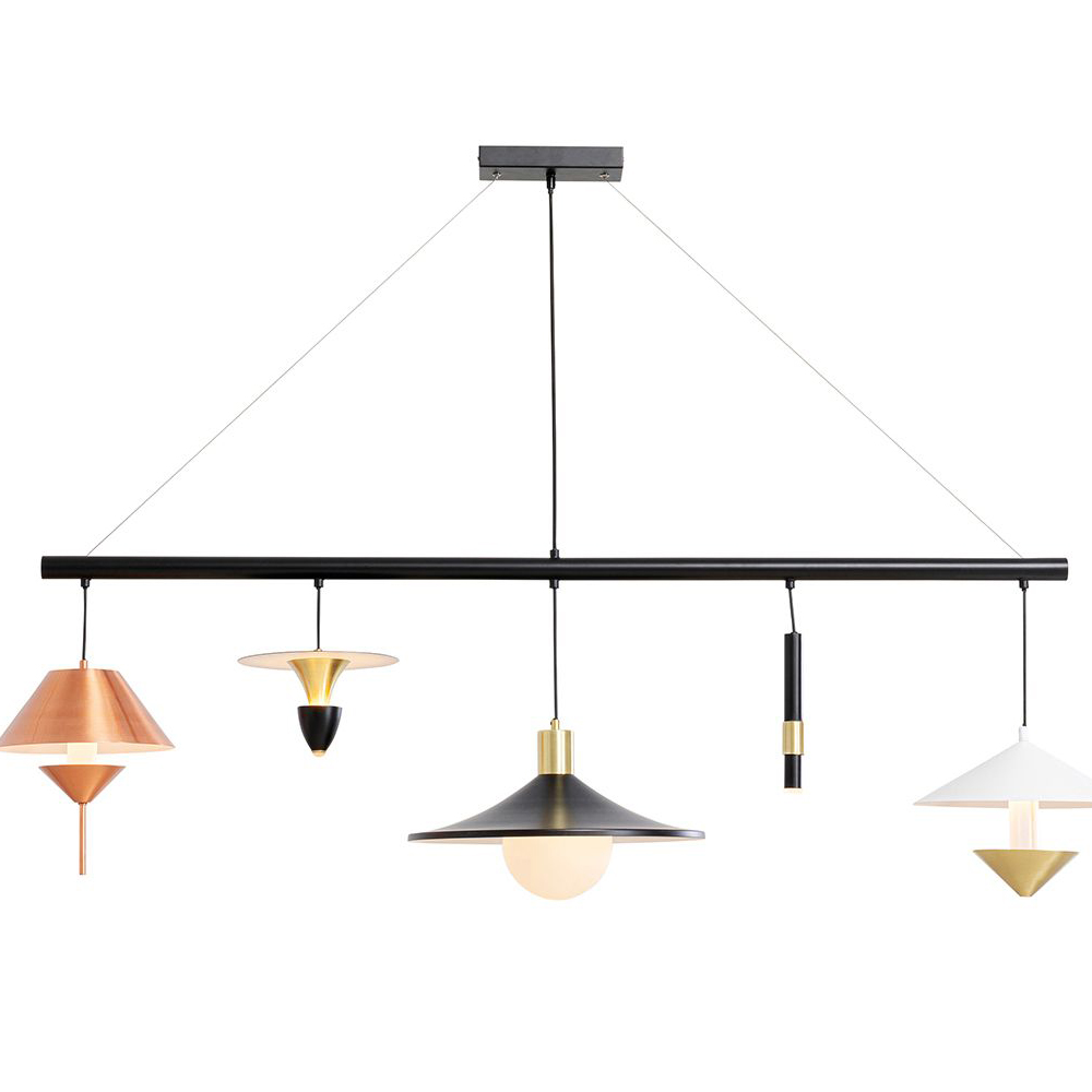 Entdecken Sie unsere beeindruckende Hängeleuchte Cappelli 155cm mit fünf einzigartig geformten Schirmen, die ein sanftes, nach unten gerichtetes Licht erzeugen. Diese Pendellampe aus hochwertigem Stahl besticht durch ihre vielseitige Oberflächengestaltung: Teils verkupfert für einen Hauch von Eleganz, teils pulverbeschichtet oder gebürstet für zeitlose Ästhetik. Bringen Sie mit dieser meisterhaften Kreation Stil und subtile Beleuchtung in jeden Raum.