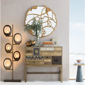 Charakterstarker Material-Mix & Match aus Glas, Muscheln, Bone, Massivholz und Metall