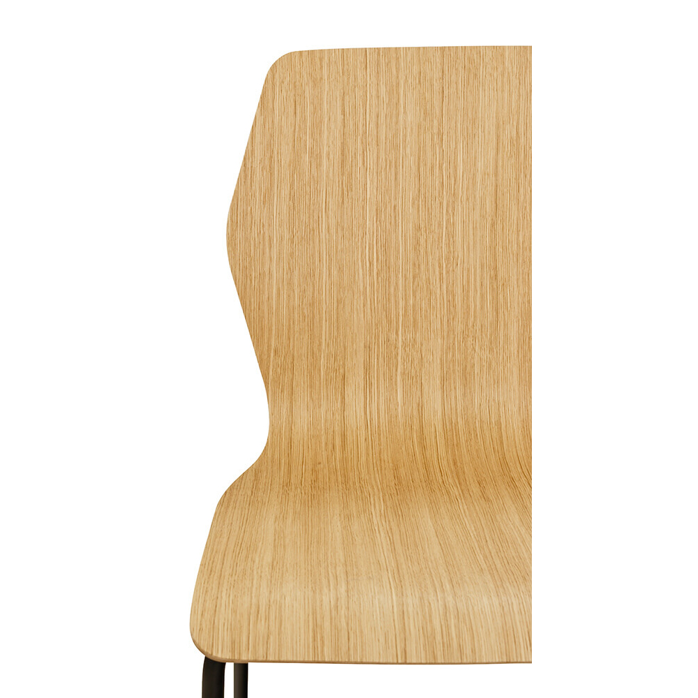 Dieser Holzschalenstuhl hat eine bequeme Sitzschale und ein stabiles Metallgestell.