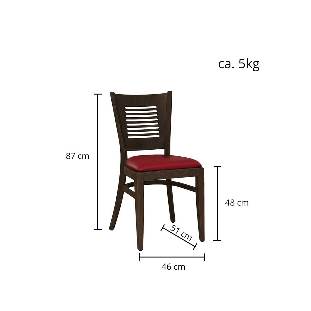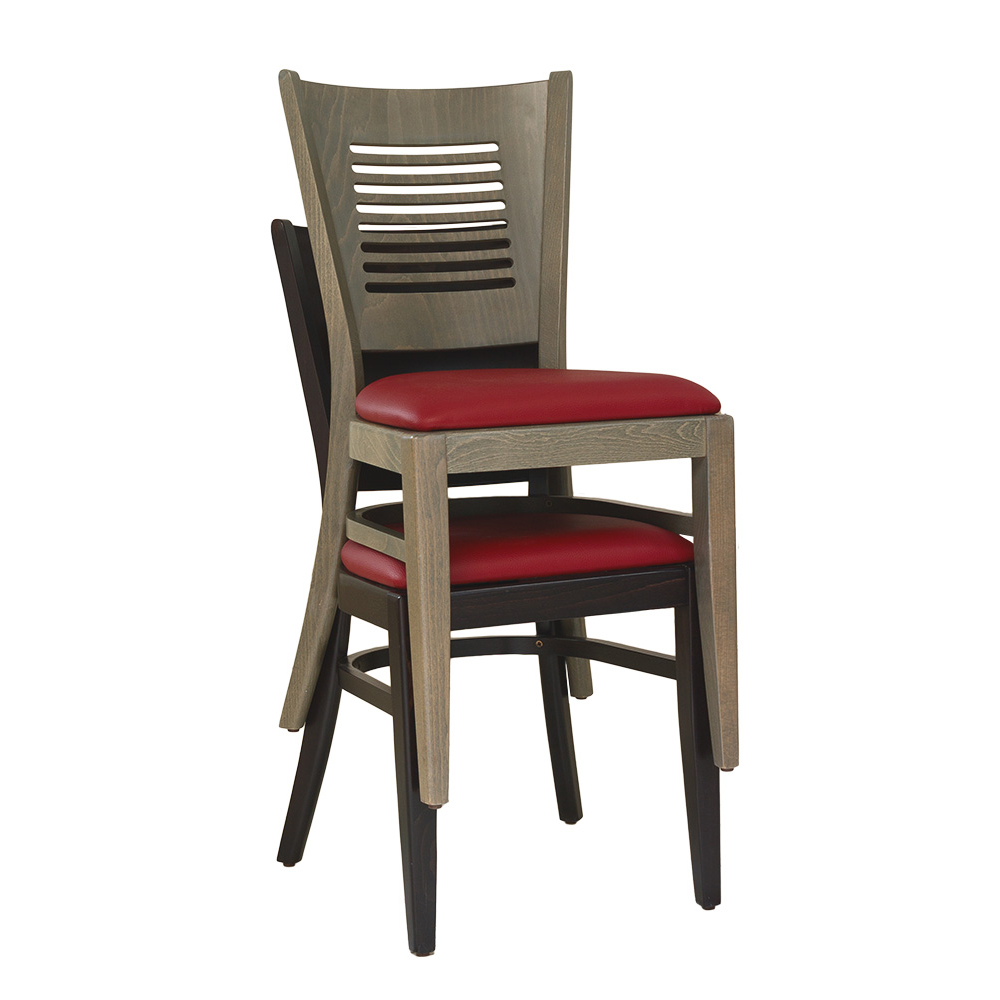 Der DARIO-200-P-ST-Eco ist ein stapelbarer Holzstuhl mit Polstersitz. So können Sie zusätzliche Stühle für große Veranstaltungen, wie Familienfeste, leicht und platzsparend aufbewahren. Die Fräsung im Rückenteil fällt angenehm auf. Diesen Restaurantstuhl erhalten Sie zu einem ausgesprochen günstigen Preis-Leistungsverhältnis!