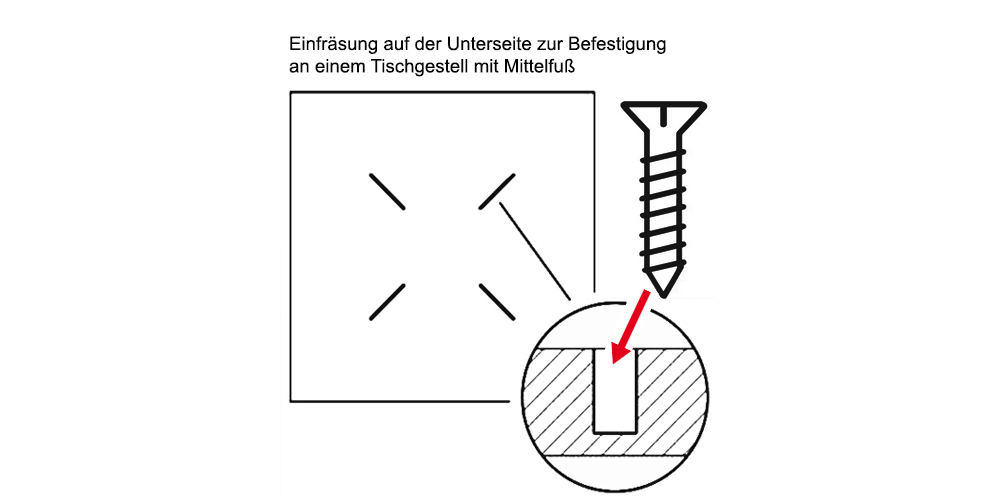 Dieser Artikel hat eine eingefräste Nut auf der Rückseite zur Erleichterung der Montage mit dem Tischgestell, passend für alle Outdoor-Tischgestelle von objekt-m.