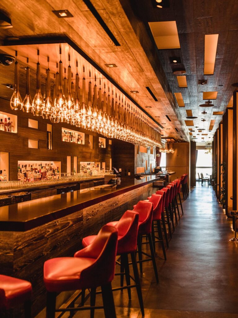 - moderne Gastro-Einrichtung mit klarer Linienführung und schlichter Deko.