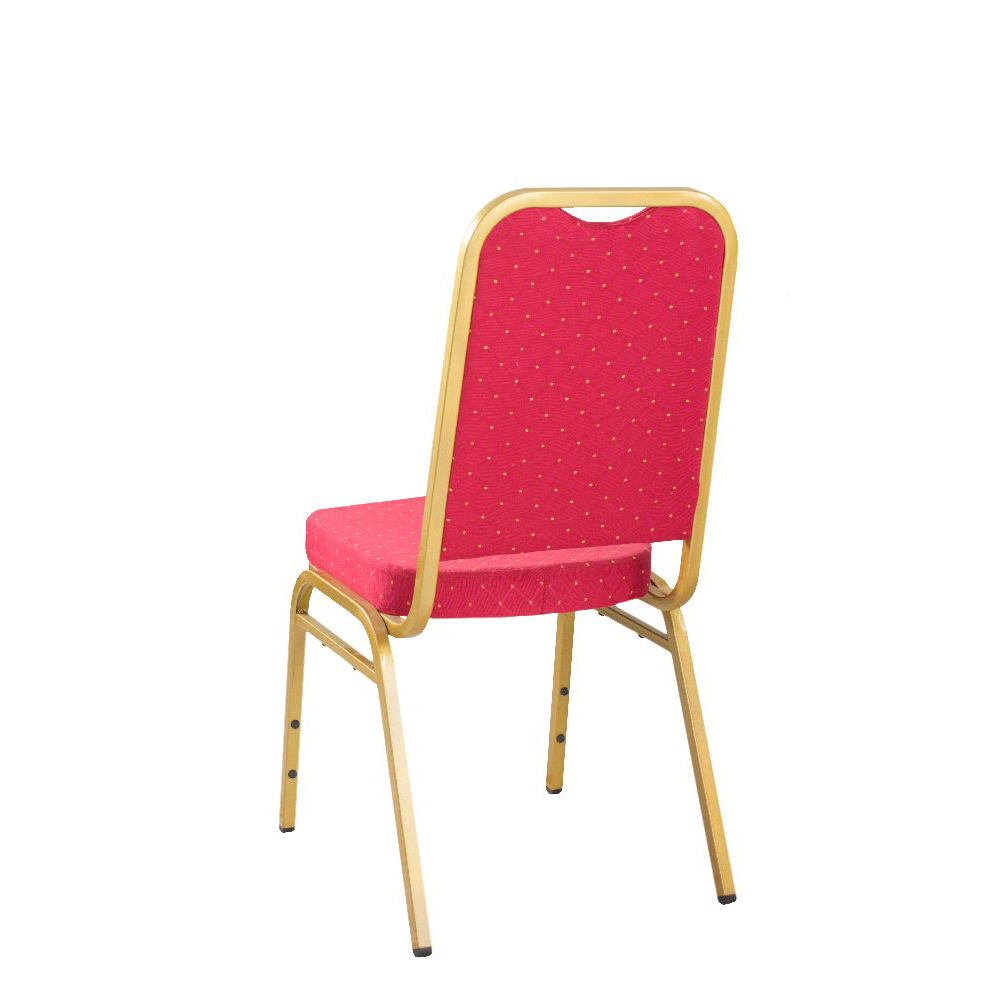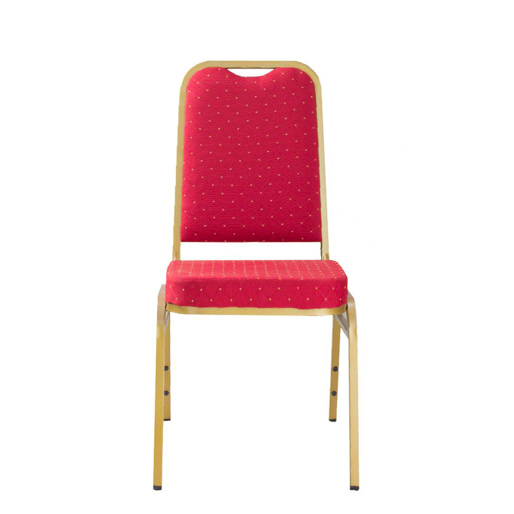Der Bankettstuhl Jakir-1 hat eine gepolsterte Sitz- und Rückenfläche. Das Gestell besteht standardmäßig aus Stahl und ist in verschiedenen Farben bestellbar.