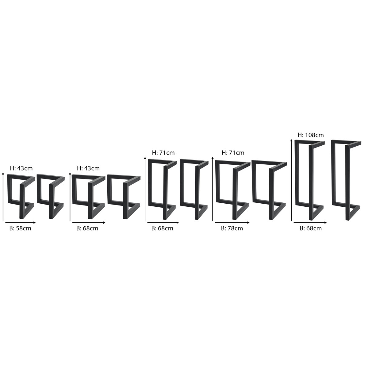 Das Kufentischgestell aus Metall im Industrialdesign. Es handelt sich um ein Set bestehend aus 2 Gestellen.