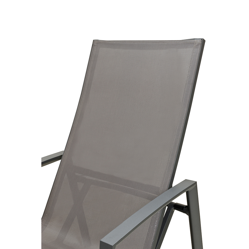 Der Liegestuhl Lyon kombiniert modernes Design mit langlebiger Funktionalität. Sein stabiles Aluminiumgestell mit Pulverbeschichtung ist korrosionsbeständig und wetterfest – eine gute Wahl für den ganzjährigen Einsatz in Gastronomie, Hotellerie und öffentlichen Einrichtungen. Die hochwertige Textylen-Bespannung sorgt für eine komfortable Sitzfläche, die atmungsaktiv, UV-beständig und leicht zu reinigen ist.