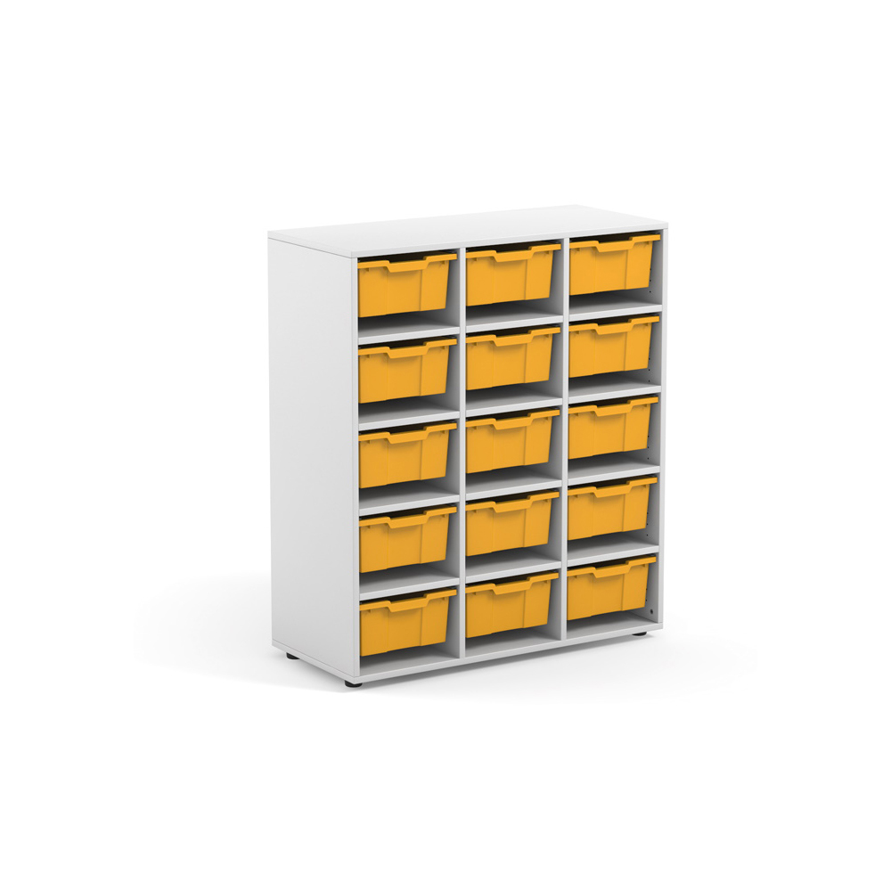 -Boxenfarben: RAL 5002 ozeanblau, RAL 1006 maisgelb, RAL 9016 elfenbeinweiß, RAL 5018 türkisblau, RAL 3003 robinrot