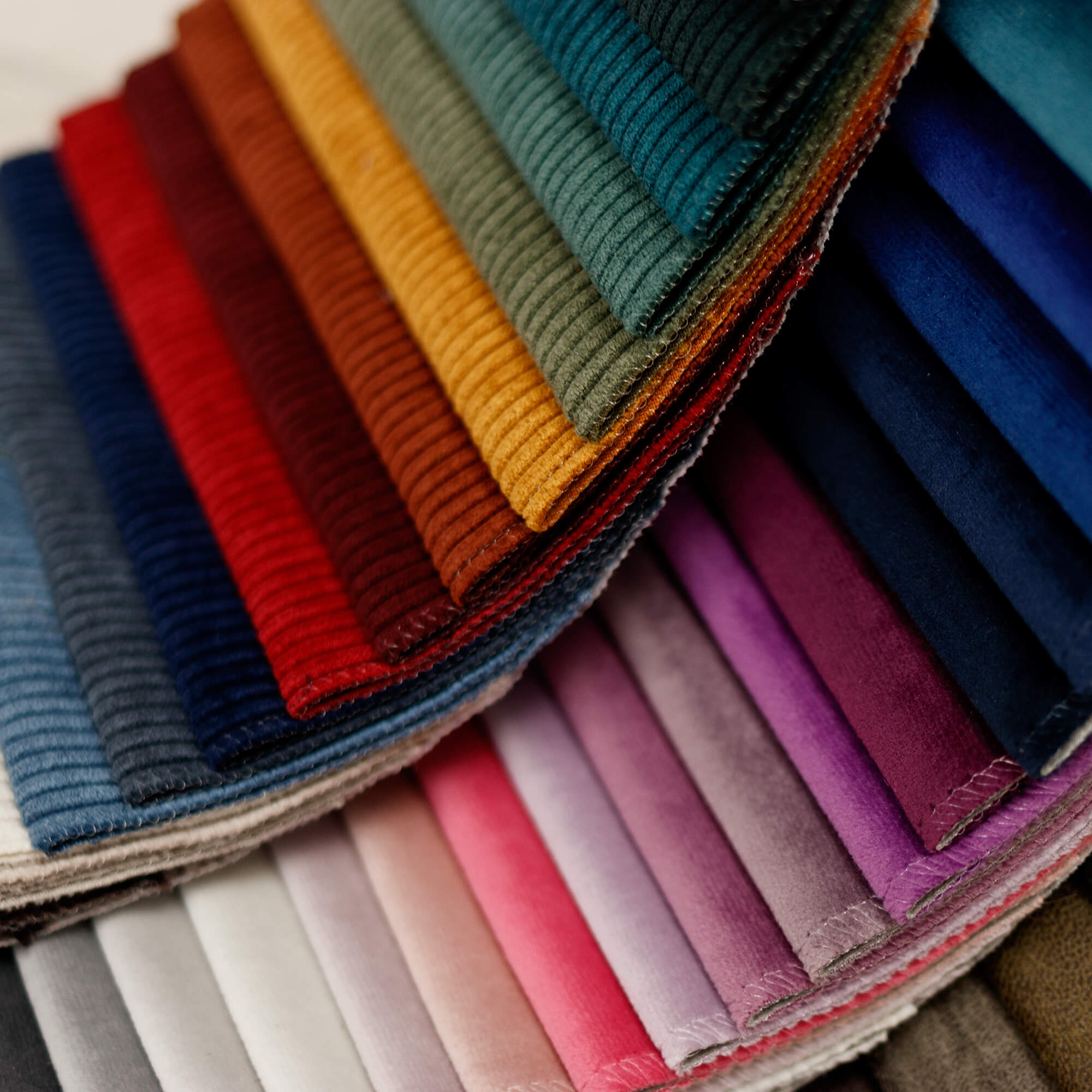 Bestellen Sie sich bequem unsere Materialmuster nach Hause um ein besseres Gefühl für unsere Bezüge und Beiztöne zu bekommen.