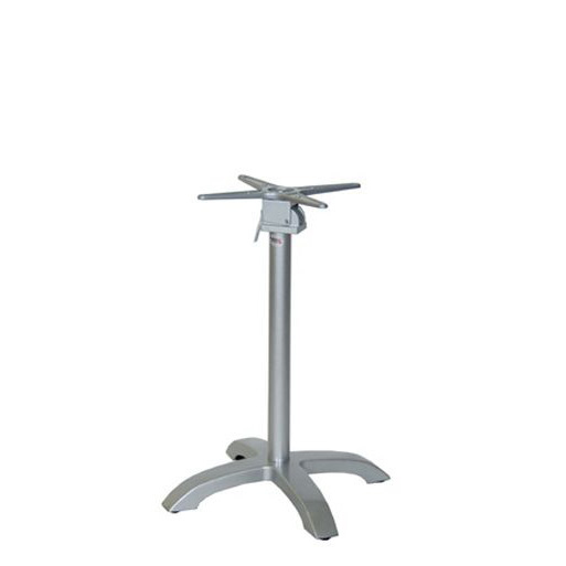 Das Nepal Kipp-Tischgestell mit Kippvorrichtung besteht aus rostfreiem Aluminium. Sie erhalten es wahlweise in Silber oder schwarz beschichtet.