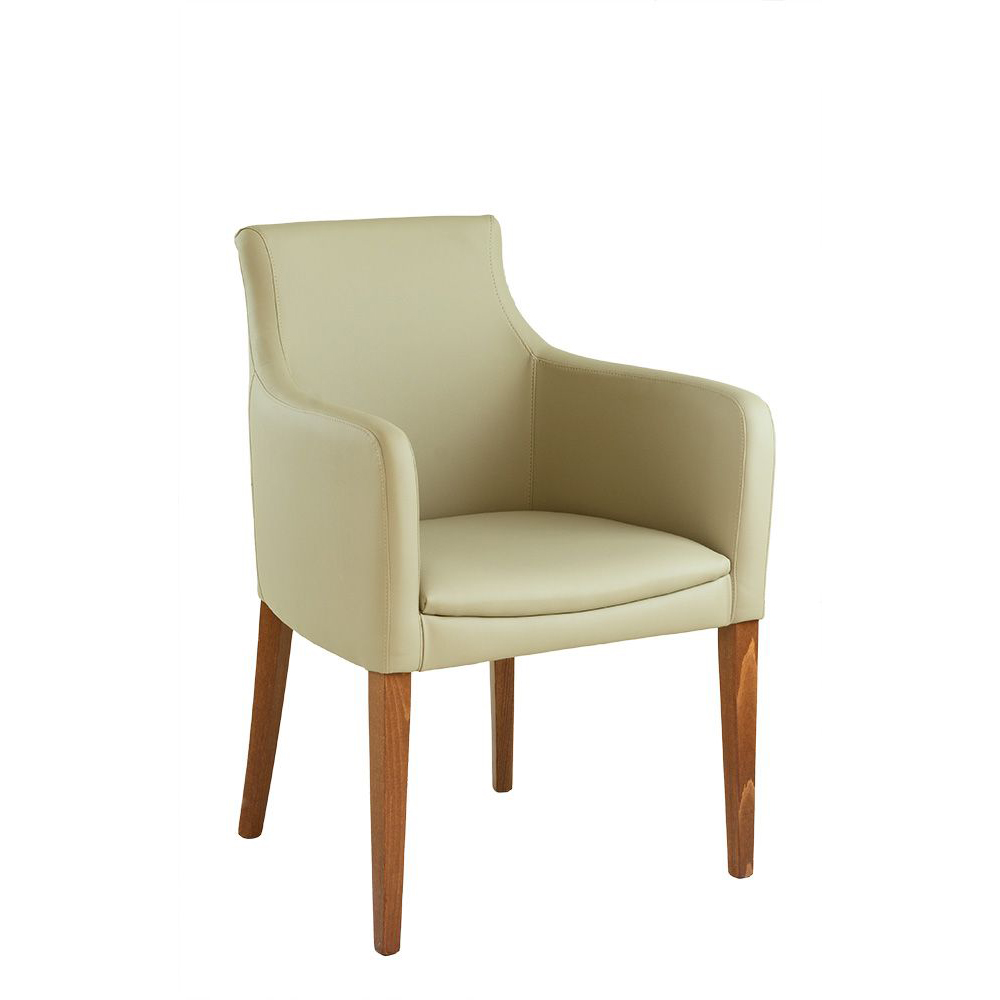 Der NURINA-Arm Vollpolsterstuhl ist ein moderner Gastronomiestuhl mit komfortablen Armlehnen. Der Bezugsstoff und Beizton ist bei diesem Modell frei wählbar.