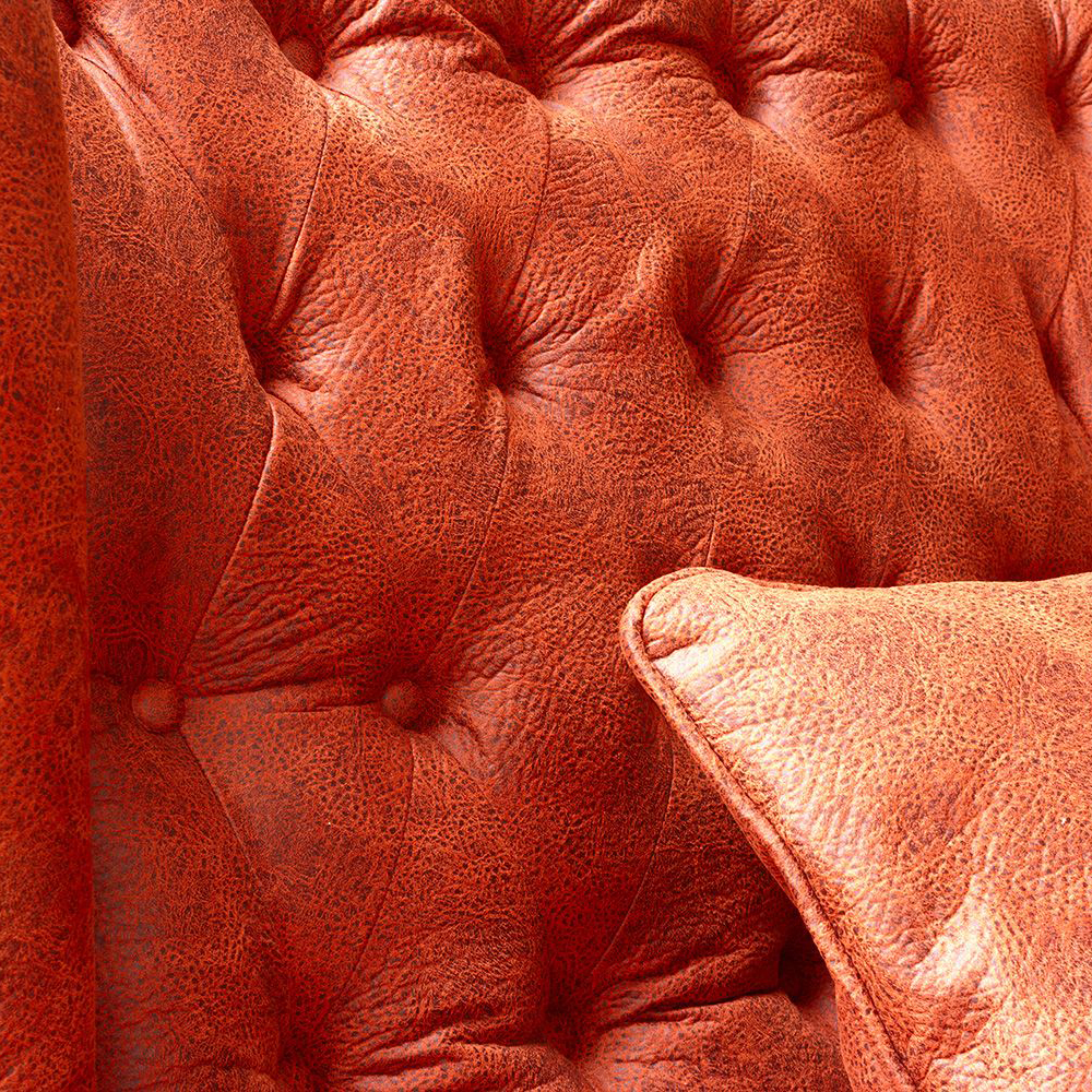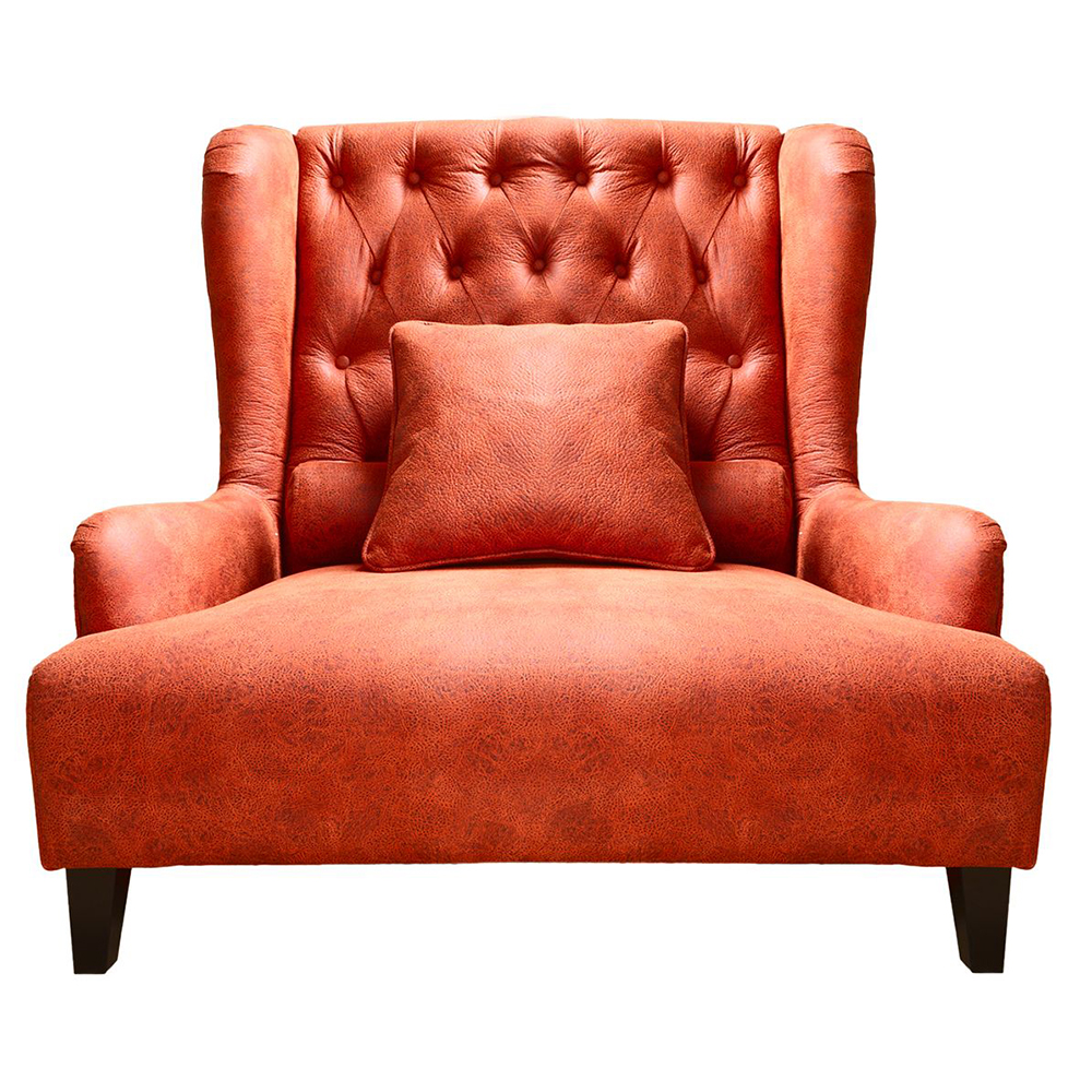 Der Sessel bietet bis zu zwei Personen Platz. Formgebung und Knopfsteppung verleihen ihm einen gediegenen Charme. Der Sessel ist in vielen verschiedenen Stoffen erhältlich.