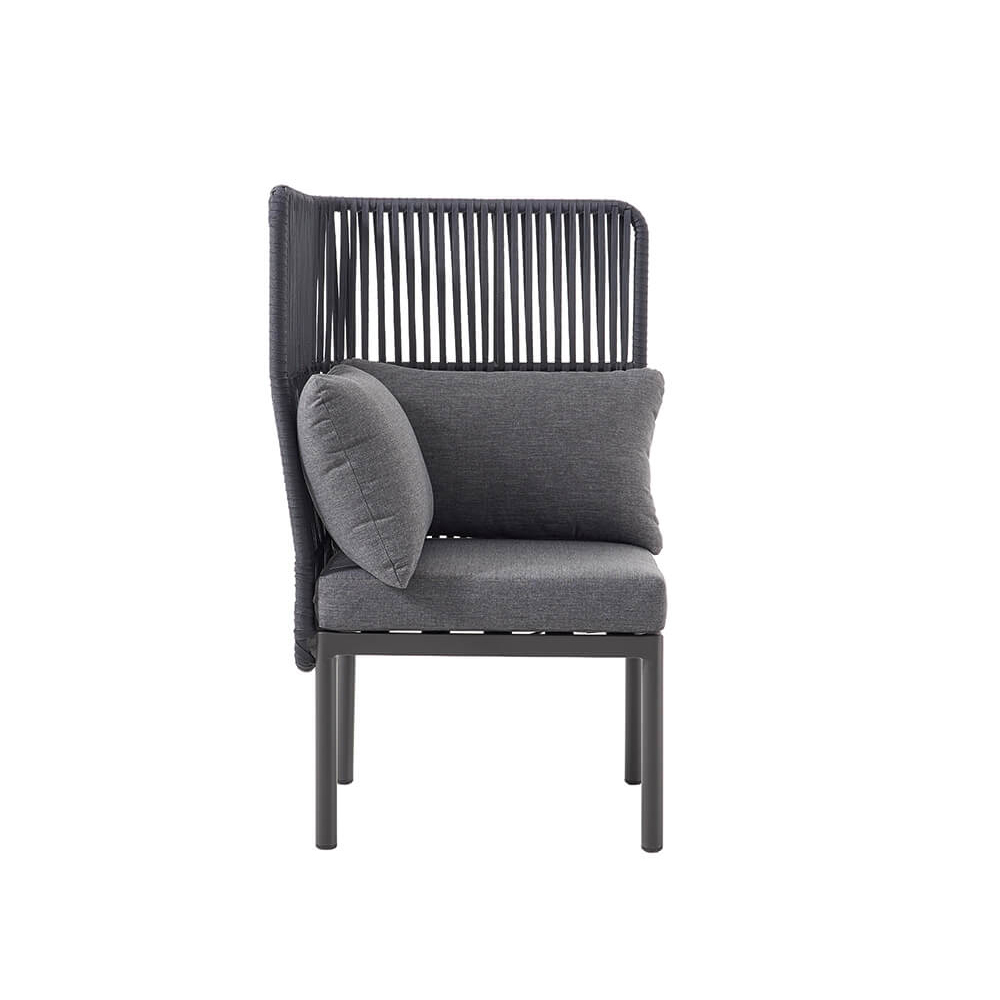 Das Out-103 Ecke High Outdoor-Bankelement bietet moderne Eleganz und hohe Funktionalität für den gewerblichen Einsatz. Es eignet sich für Gastronomiebetriebe, Hotels, Cafés und öffentliche Einrichtungen, die ihre Außenterrassen, Lounges oder Veranstaltungsbereiche hochwertig und komfortabel gestalten möchten. Mit einem Seilgeflecht Rücken in Dark Grey RT04A und einem pulverbeschichteten Metallgestell bietet es nicht nur eine langfristige Nutzung und Widerstandsfähigkeit, sondern auch eine ansprechende, moderne Optik, die zu nahezu jedem Außendesign passt.