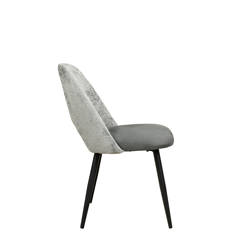 Stabiler, rundumgepolsterter Stuhl mit schwarzem Metallgestell und bequemer gerundeter Rückenlehne.