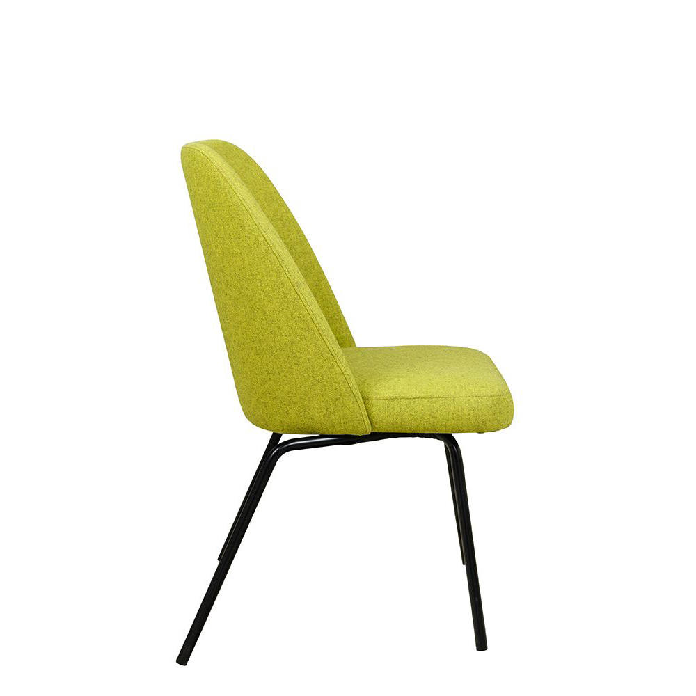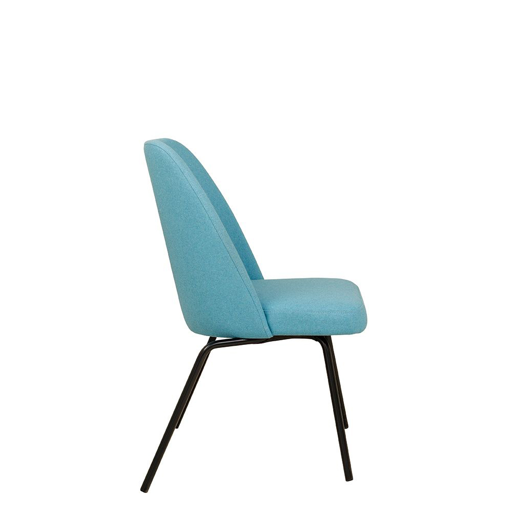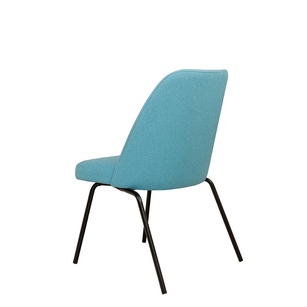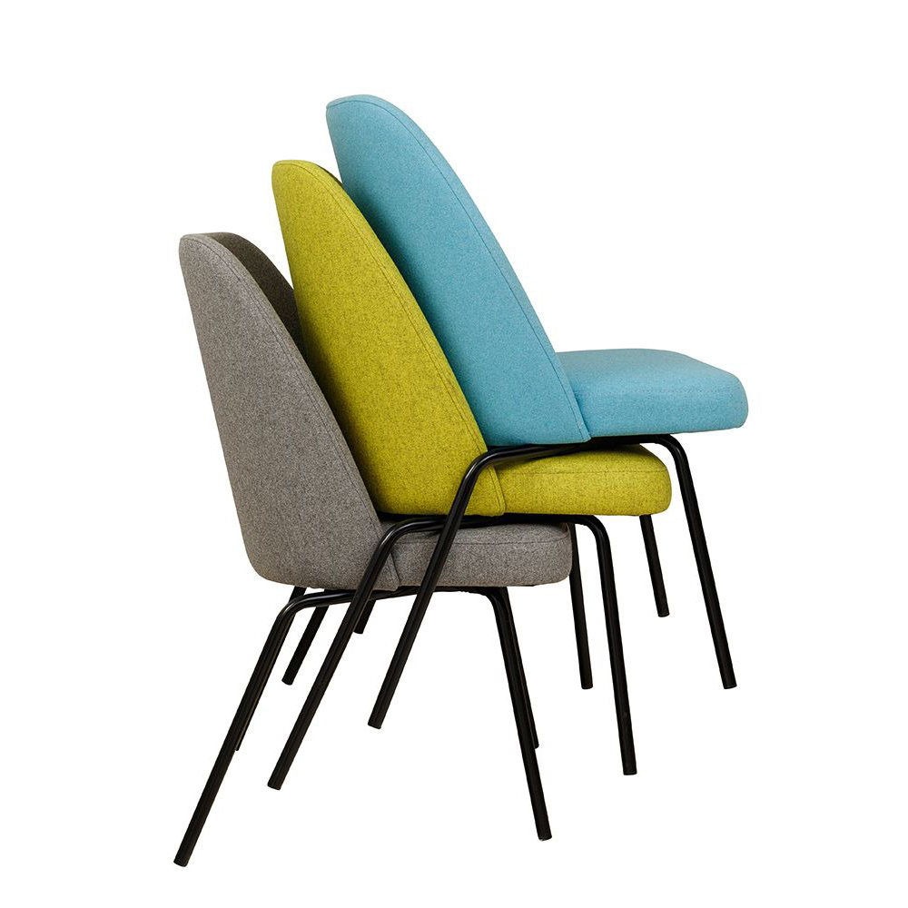 Der Sanoro-Stack verbindet Kanten mit weicher Linienführung. Während Sitz und Rückenlehne vom Charme der Siebzigerjahre inspiriert sind, kommt das robuste Metallgestell geradlinig und modern daher. Die hinteren Beine sind gewinkelt, damt mehrere Stühle übereinander gestapelt werden können.