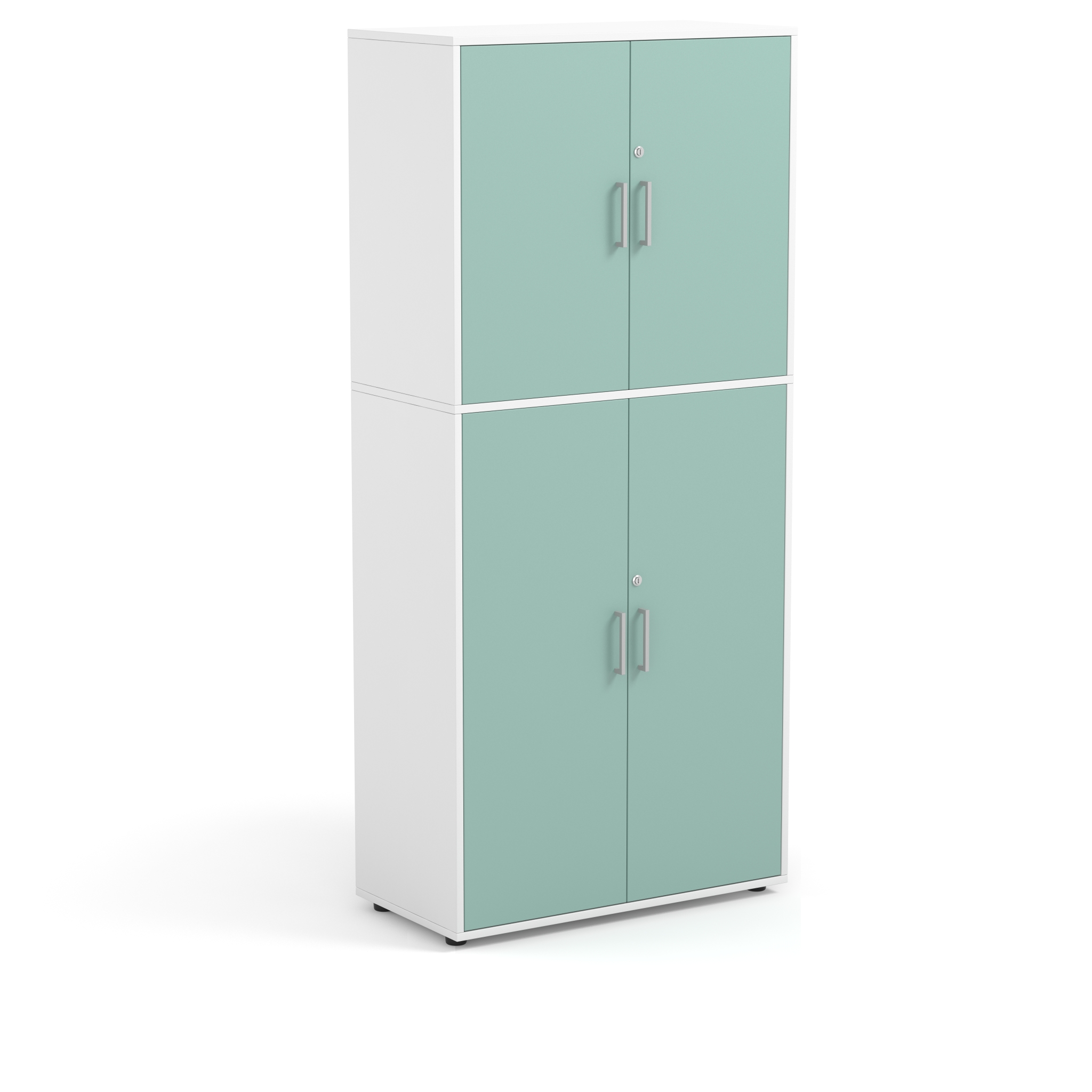 -oben: 2 Tueren mit Metallgriff, abschliessbar -1 Einlegeboden