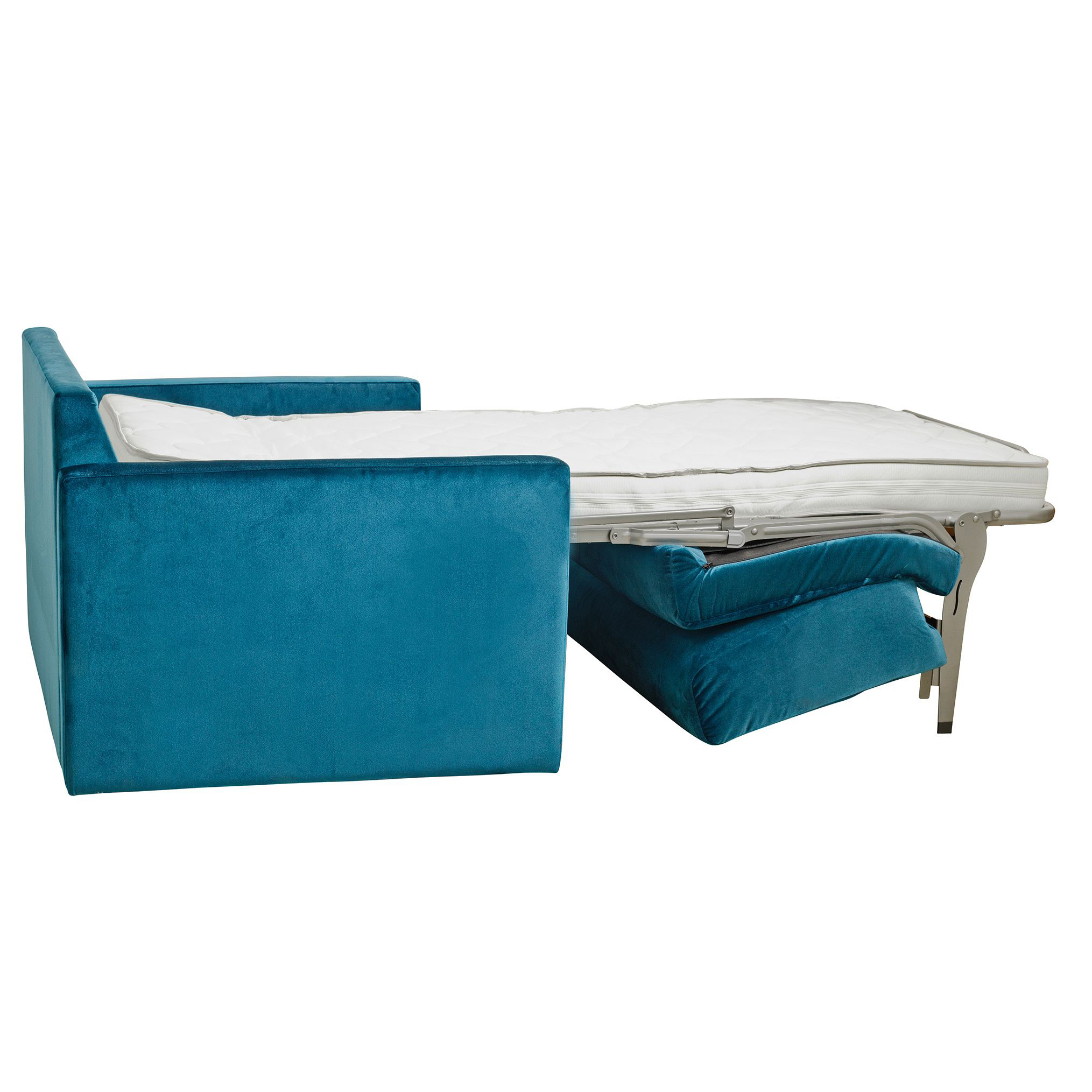 Das Slopo-Sleep ist eine Schlafcouch, die sich mit wenigen Handgriffen in ein Bett verwandeln lässt. Das Sofa ist auch mit anderen Matratzenbreiten erhältlich.