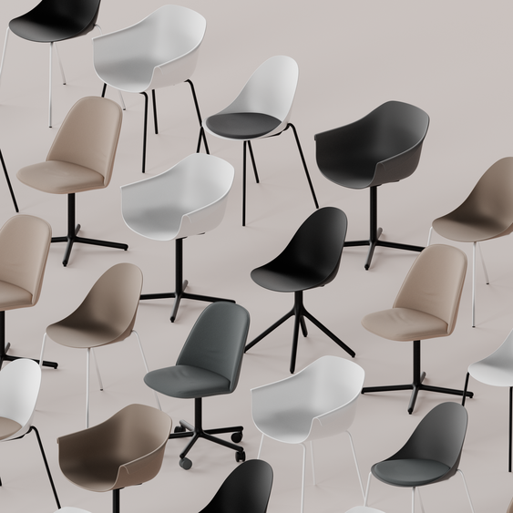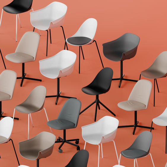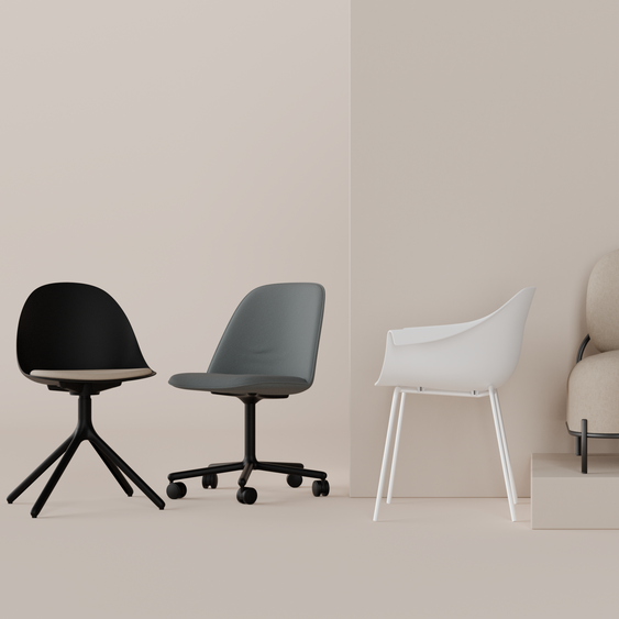 - Sitzschale: Polypropylen (60% recycelt) und Glasfaser (20%)
