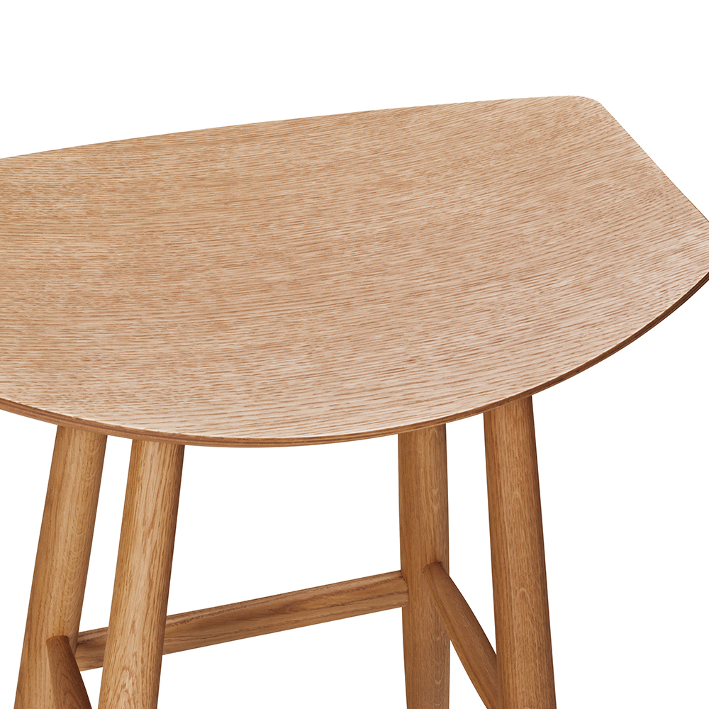 Der Swina-Bar mit seiner leicht gewölbten Sitzschale hebt sich deutlich von klassischen Barhockern ab. Der Barhocker besteht aus robustem Eichenholz!