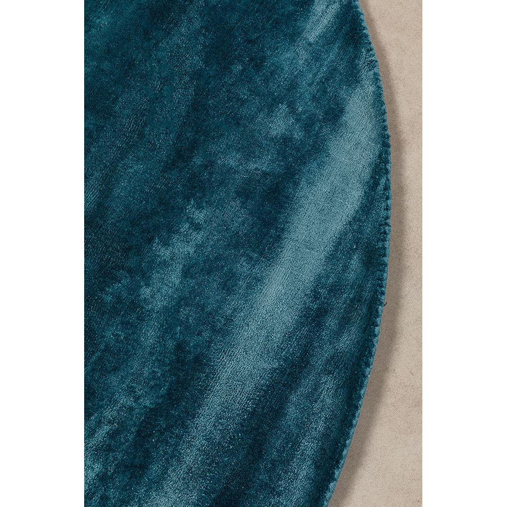 Der große, runde Teppich in Blau mit einem Durchmesser von 200 cm besteht aus hochwertigen Materialien: 100% Baumwolle und 100% Viskose. Viskose verleiht dem Teppich einen luxuriösen Glanz ähnlich wie Seide und je nach Lichteinfall kann er mal heller und mal dunkler wirken.