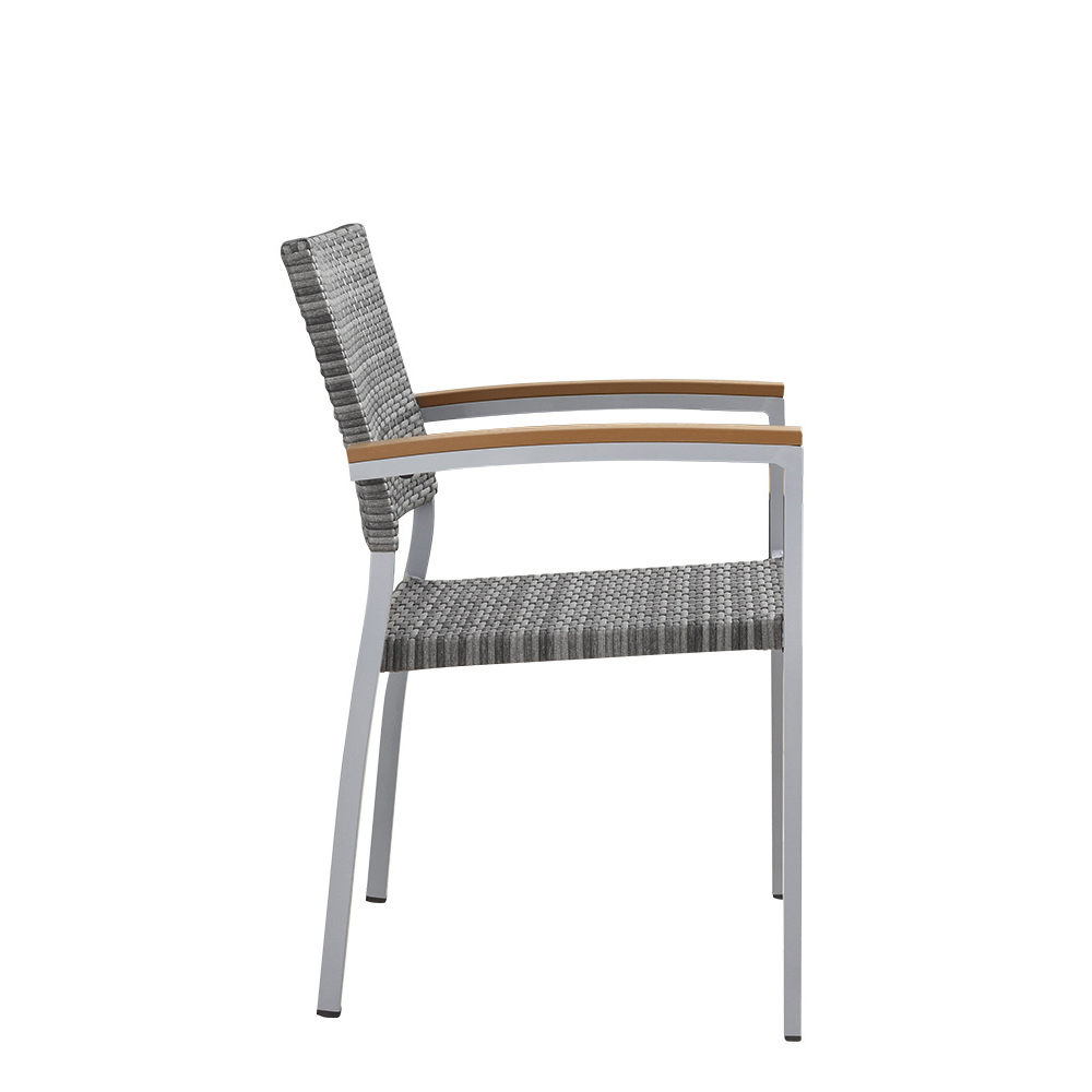 Der Verbania Mixed Grey ist ein hochwertiger Outdoor-Stuhl, der die klassische Rattan-Ästhetik mit der Funktionalität moderner Gastronomiemöbel vereint. Entwickelt für die professionelle Außenbestuhlung in Gastronomie und Hotellerie, überzeugt dieser Gartenstuhl durch ein rostfreies Aluminiumgestell, UV-beständiges Geflecht und elegante Polywood-Armlehnen.