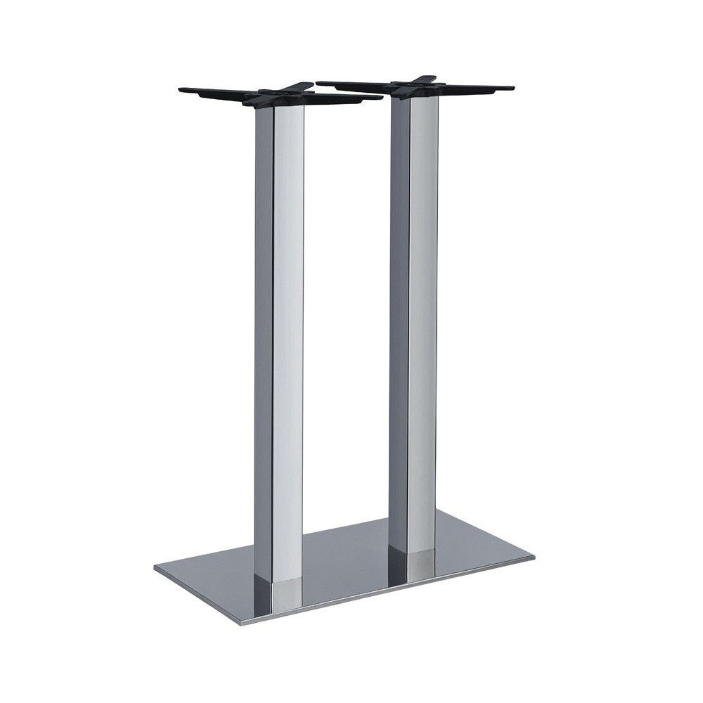 Das TG-407-C-H ist ein edles Tischgestell aus Chrom mit zwei Tischbeinen und einer eckigen Bodenplatte.