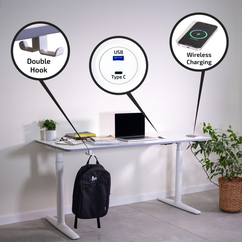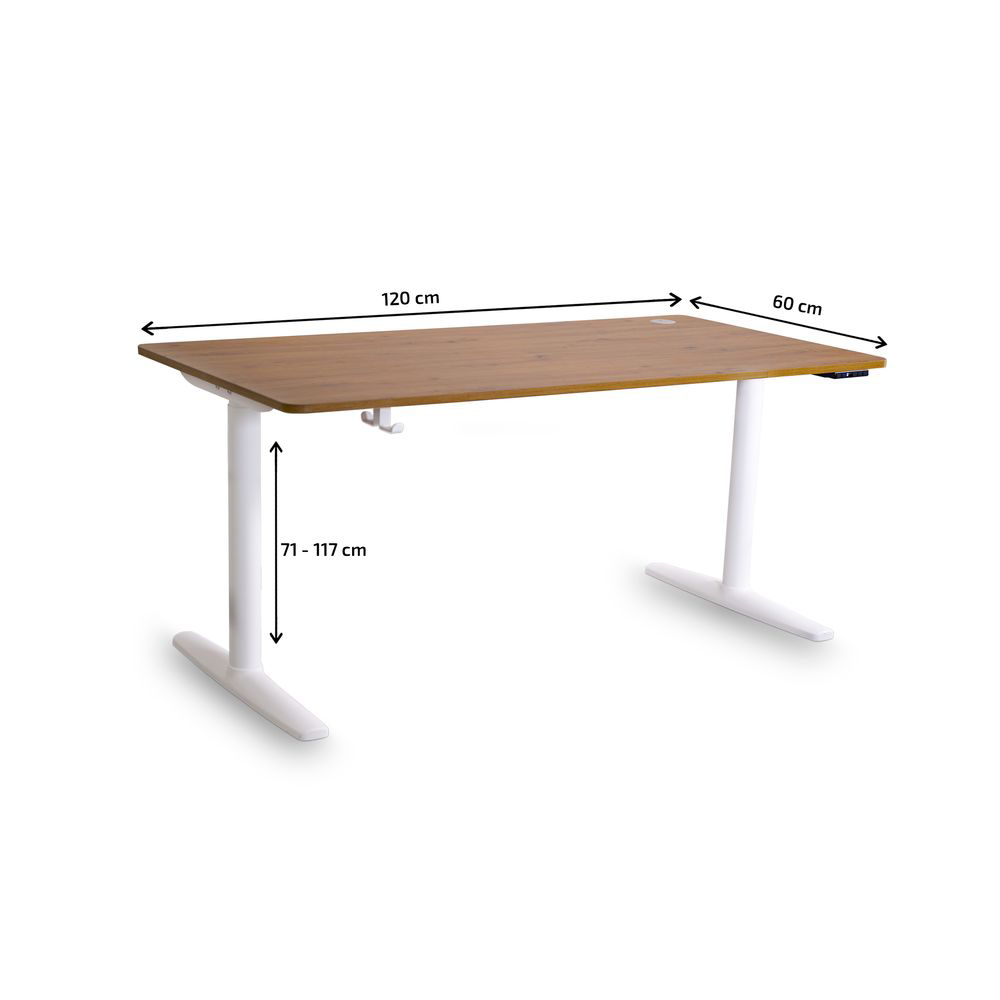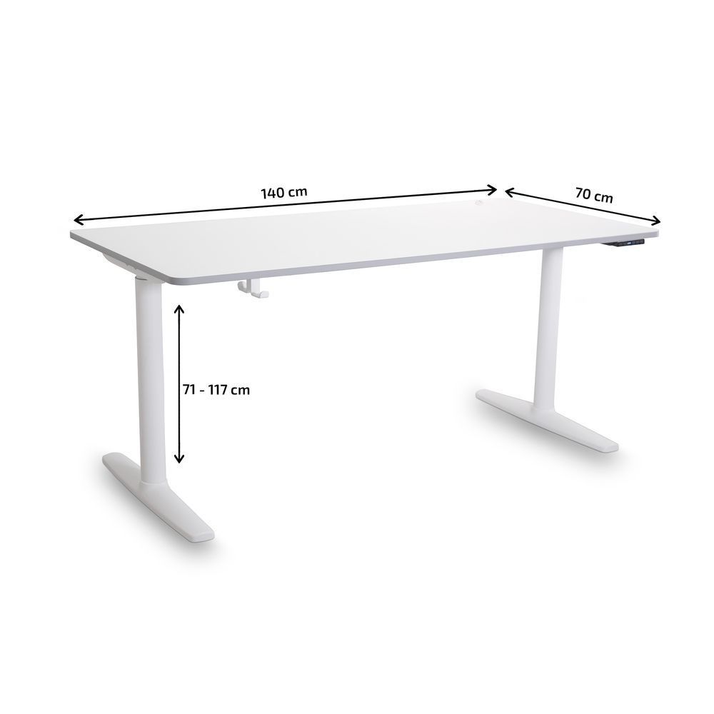 - Höhenverstellung: Stufenlos elektrisch höhenverstellbar zwischen 71-117 cm
