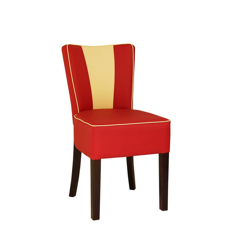 Das Modell Toran-Stripes ist ein sehr modernes Stuhlmodell. Der Stuhlrücken ist zweifarbig und hat in der Mitte einen breiten Streifen. Zusätzlich hat der Vollpolsterstuhl Kontrastnähte an der Sitz- und Rückenfläche. Ein schöner Stuhl für jeden Gastronomiebetrieb!