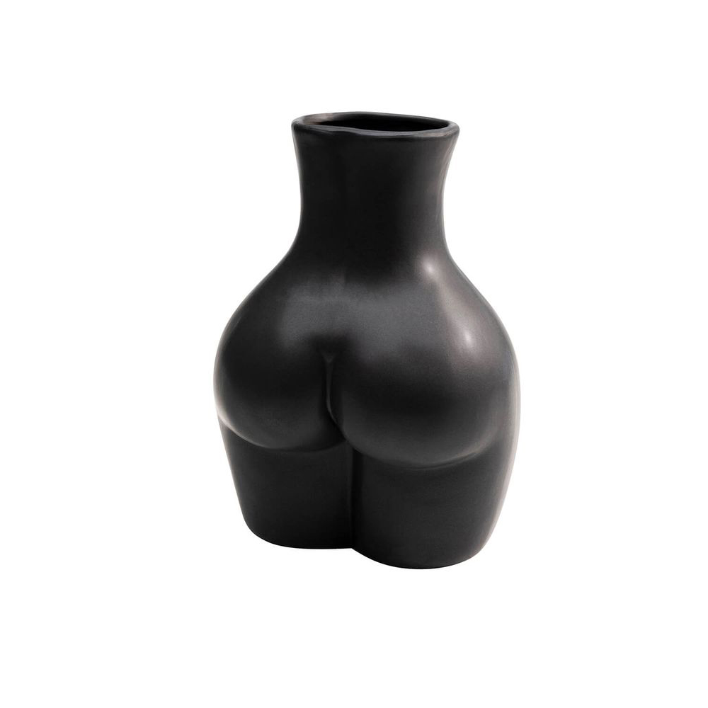 Eine schwarze Vase aus glasierter Keramik präsentiert sich mit den sinnlichen Kurven eines Körpers, was ihr einen modernen und extravaganten Touch verleiht. Jede dieser Keramikvasen wird in Handarbeit hergestellt und ist somit ein einzigartiges Unikat.