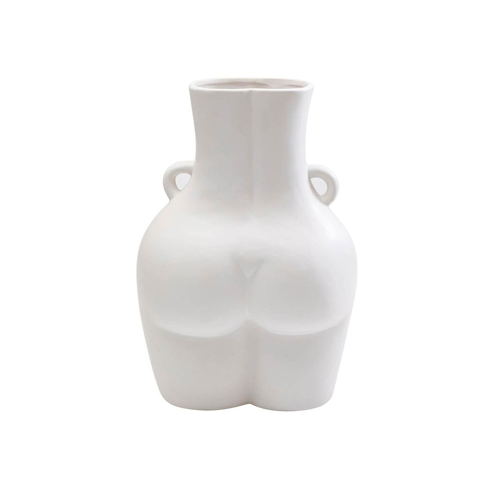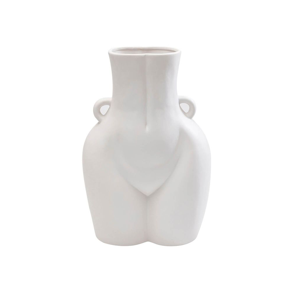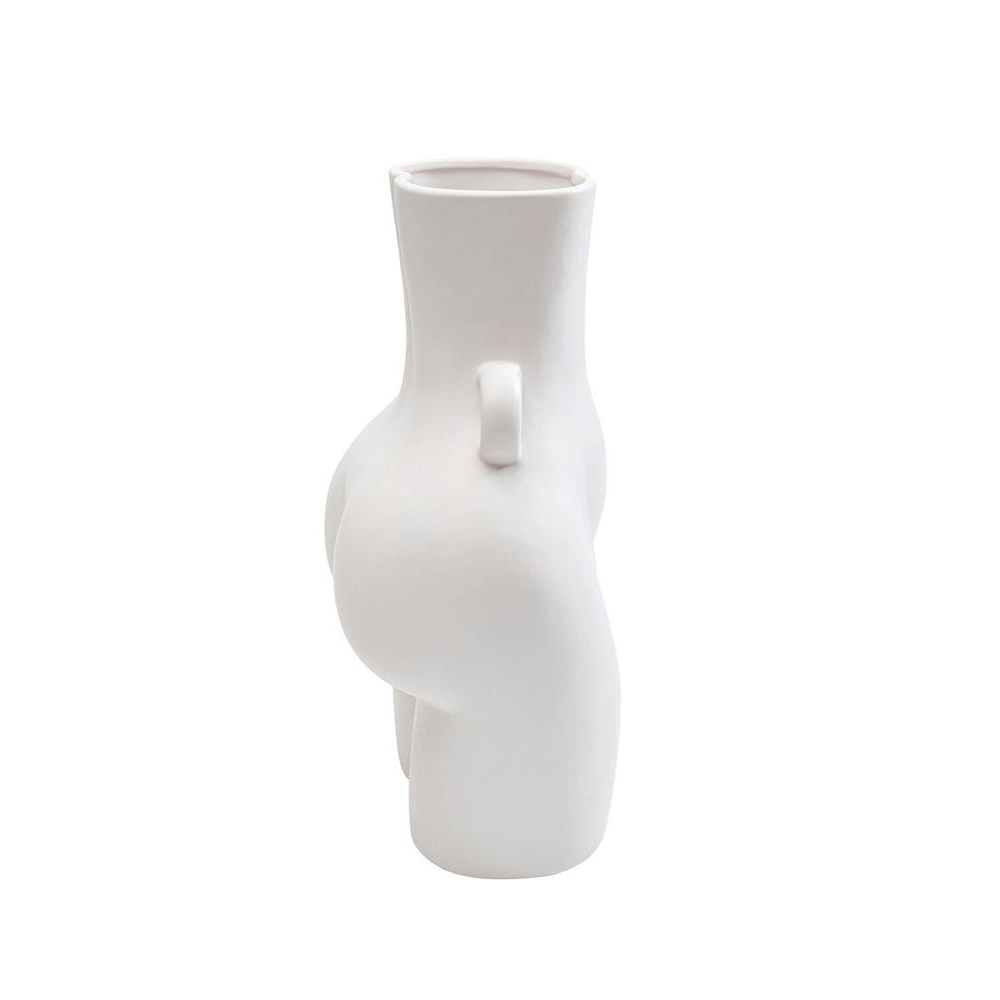 Eine Vase aus glasierter Keramik in Weiß. Ihre sinnlichen Kurven verleihen der Blumenvase einen modernen und extravaganten Touch. Jede Vase aus Keramik wird in Handarbeit hergestellt, was sie zu einem einzigartigen Unikat macht. Sie ist ein Blickfang mit Unterhaltungswert.