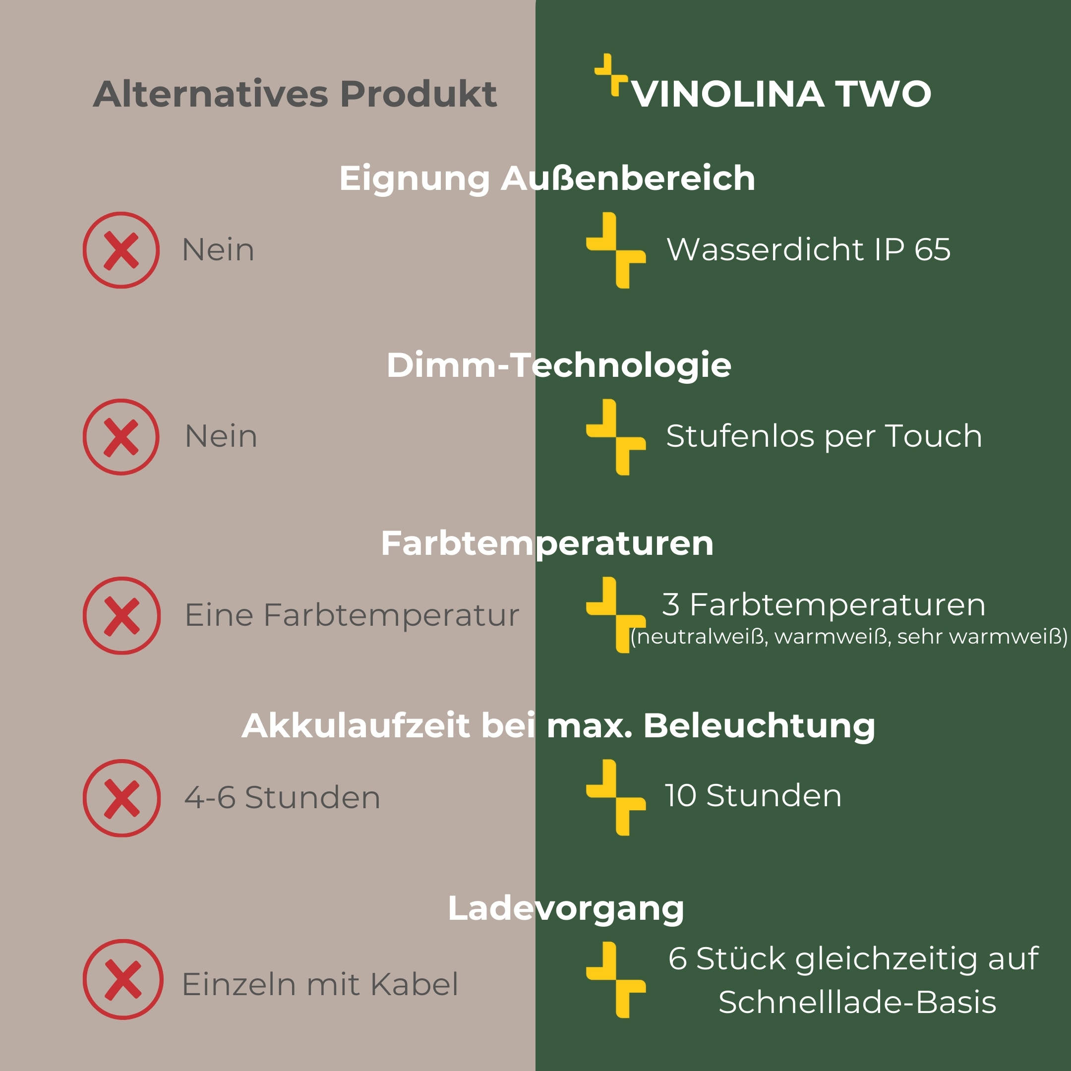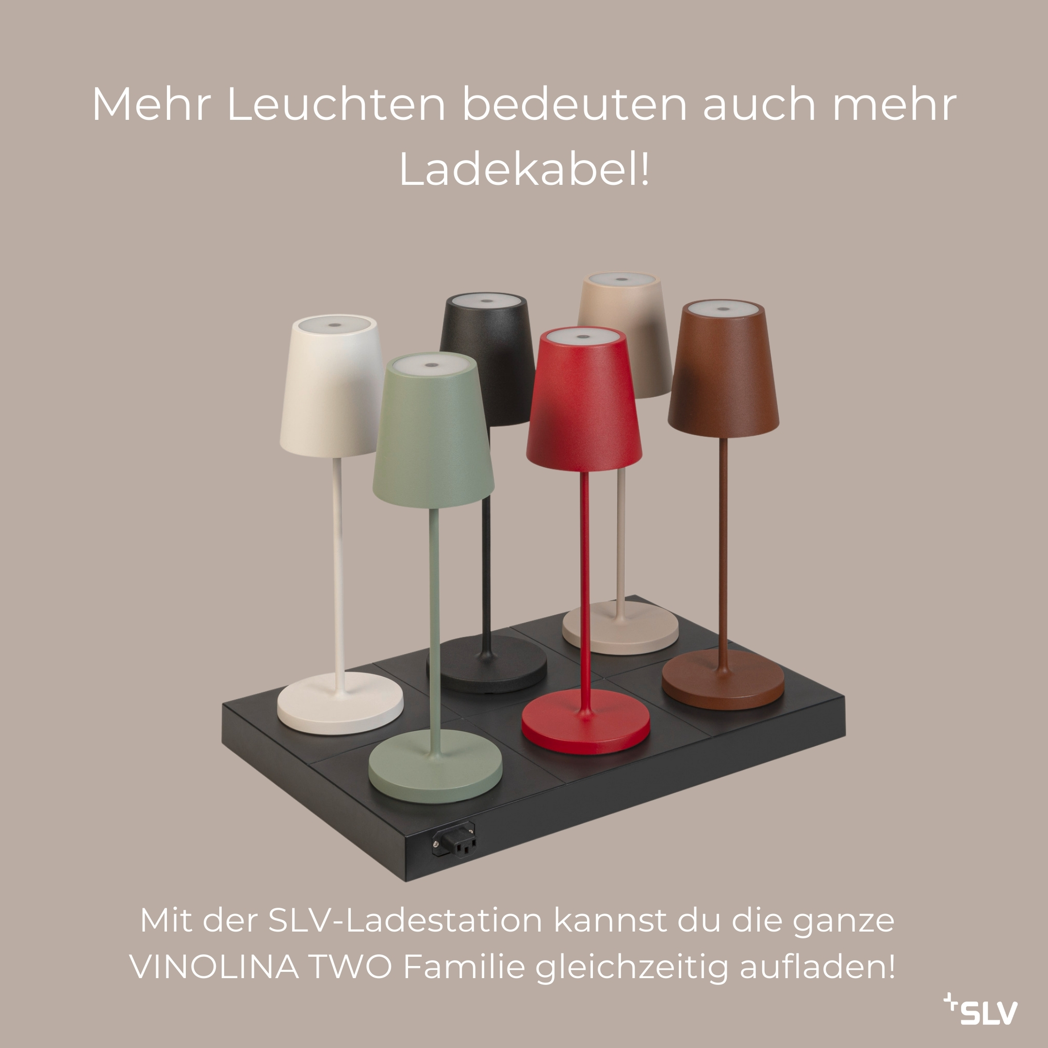 VINOLINA TWO heißt die hochwertig aus Aluminium gefertigte Tischleuchte, die sich dank Schutzart IP65 auch nach draußen mitnehmen lässt. In ihrem zeitlosen Design verströmt sie mit einer einzigen Akkuladung 10 Stunden ein nach oben und unten gerichtetes Licht, dessen Farbtemperatur via CCT-Switch einstellbar ist (2200K/2700K/3000K). Dabei ist die mobile Leuchte in sechs verschiedenen Trendfarben erhältlich. Die Ladestation ist mitsamt USB-Kabel im Lieferumfang enthalten. Erleben Sie mit VINOLINA TWO eine elegante Lösung in Sachen Licht, die via Touchschalter noch dimmbar ist.