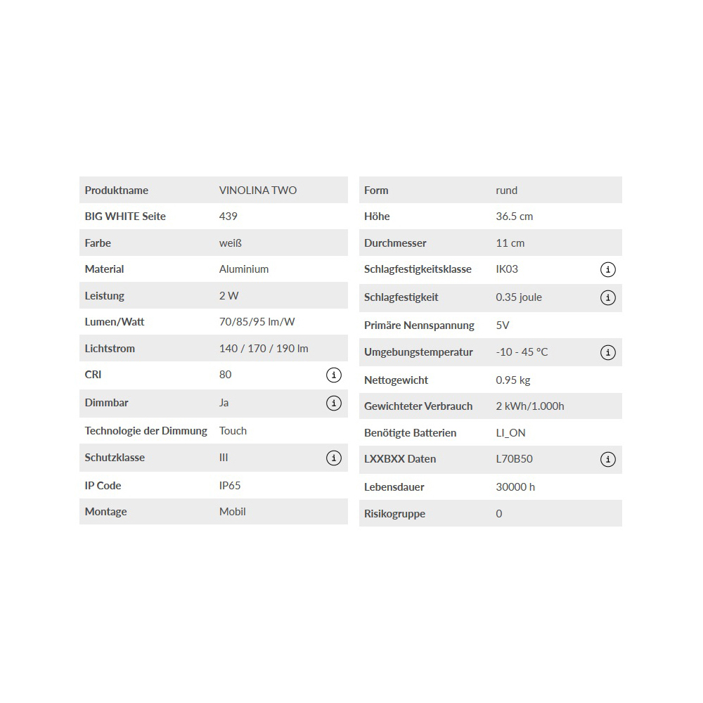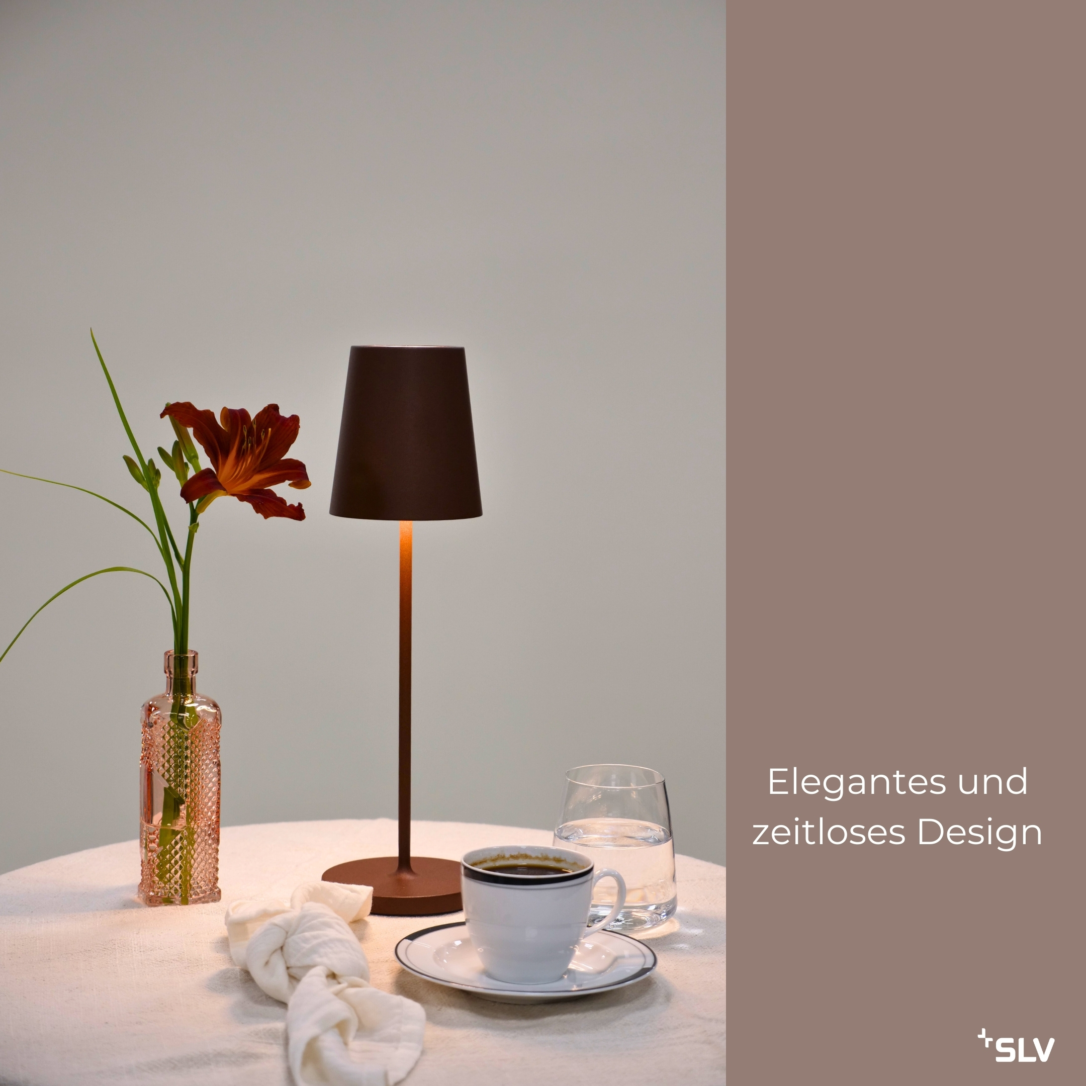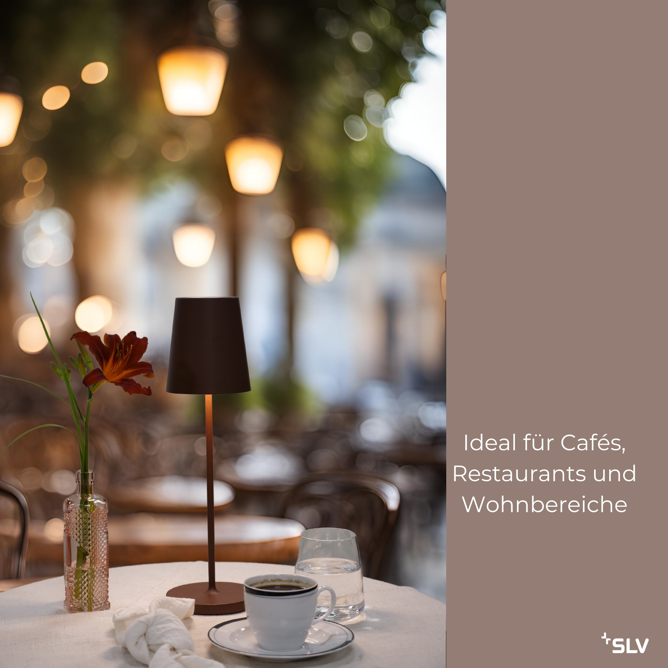 VINOLINA TWO heißt die hochwertig aus Aluminium gefertigte Tischleuchte, die sich dank Schutzart IP65 auch nach draußen mitnehmen lässt. In ihrem zeitlosen Design verströmt sie mit einer einzigen Akkuladung 10 Stunden ein nach oben und unten gerichtetes Licht, dessen Farbtemperatur via CCT-Switch einstellbar ist (2200K/2700K/3000K). Dabei ist die mobile Leuchte in sechs verschiedenen Trendfarben erhältlich. Die Ladestation ist mitsamt USB-Kabel im Lieferumfang enthalten. Erleben Sie mit VINOLINA TWO eine elegante Lösung in Sachen Licht, die via Touchschalter noch dimmbar ist.